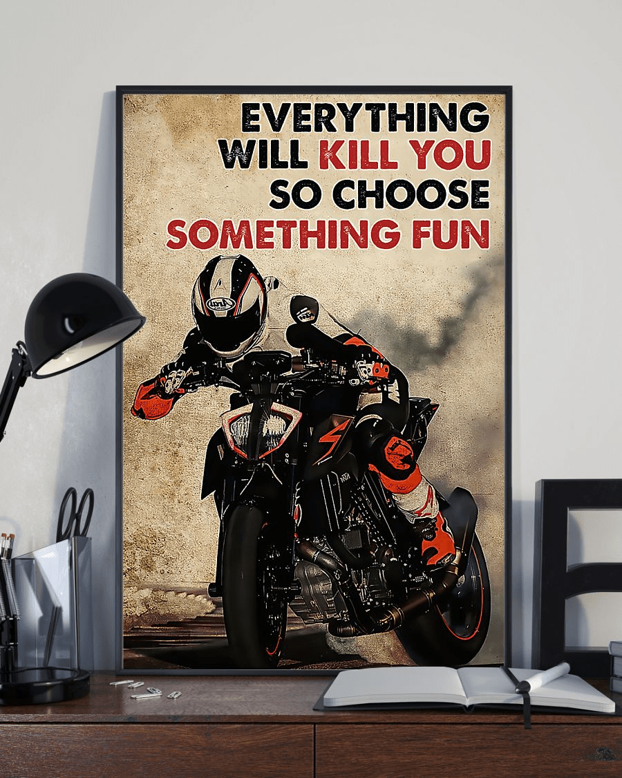 Todo te matará, así que elige algo divertido. Póster de hombre conduciendo una motocicleta, lienzo
