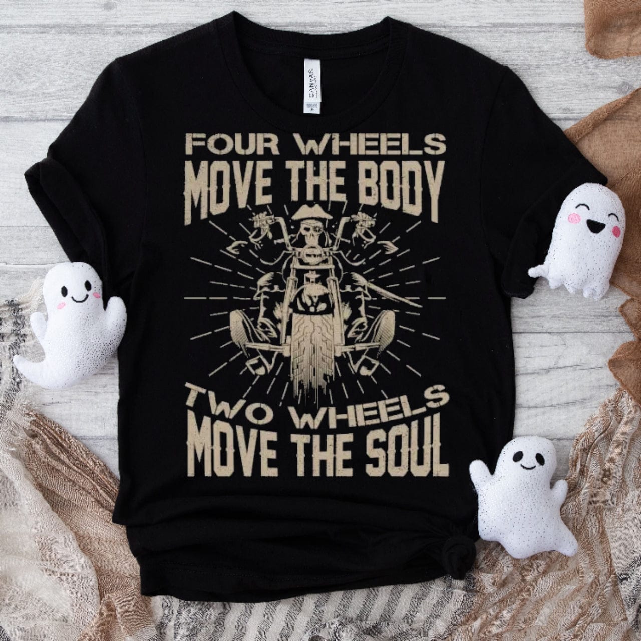 Cuatro ruedas mueven el cuerpo, dos ruedas mueven el alma, camiseta de motociclista con esqueleto