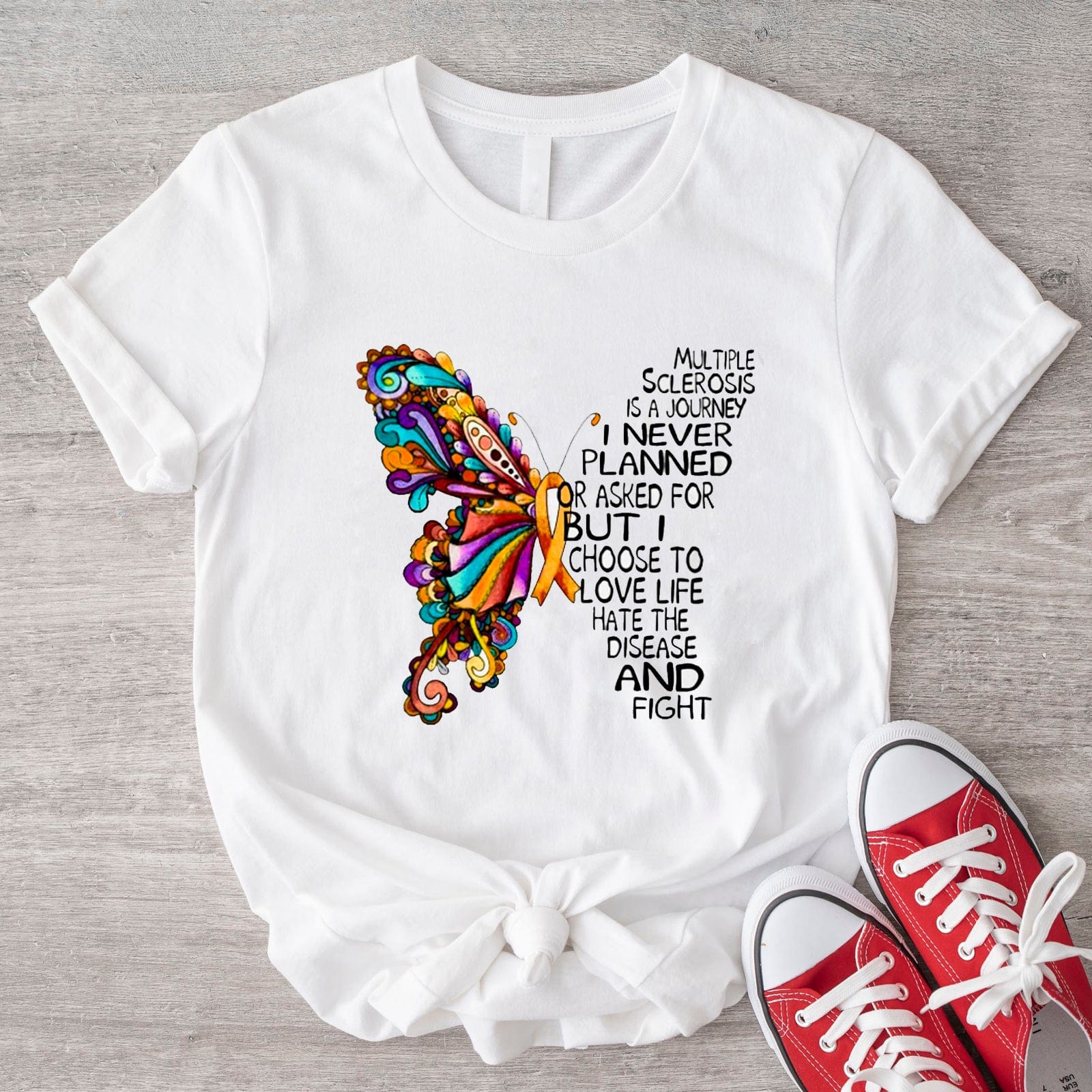 La esclerosis múltiple es un viaje Camisetas de mariposa naranja para EM