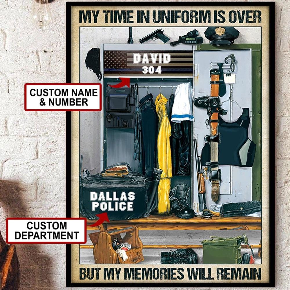 Mi tiempo en uniforme ha terminado, pero mis recuerdos permanecerán, póster de policía personalizado, lienzo