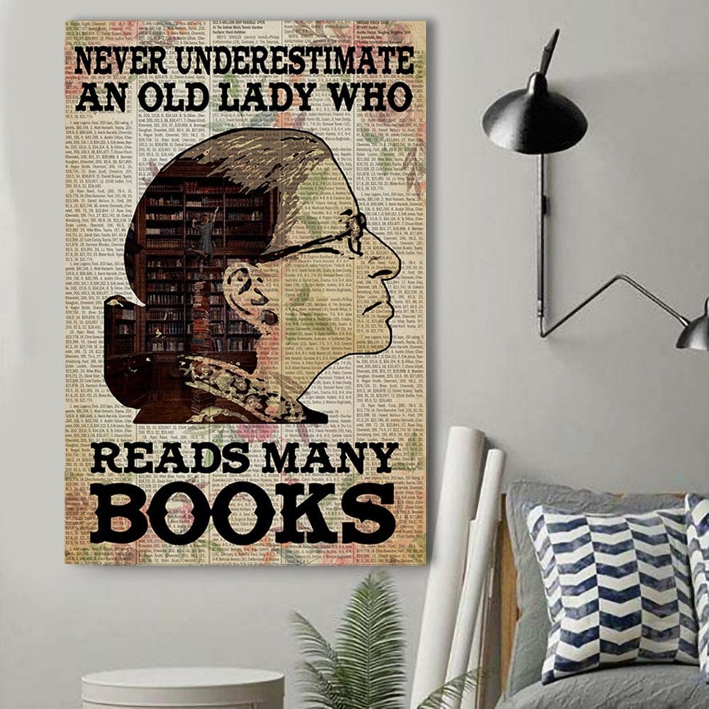 Nunca subestimes a una anciana que lee muchos libros Póster, Lienzo