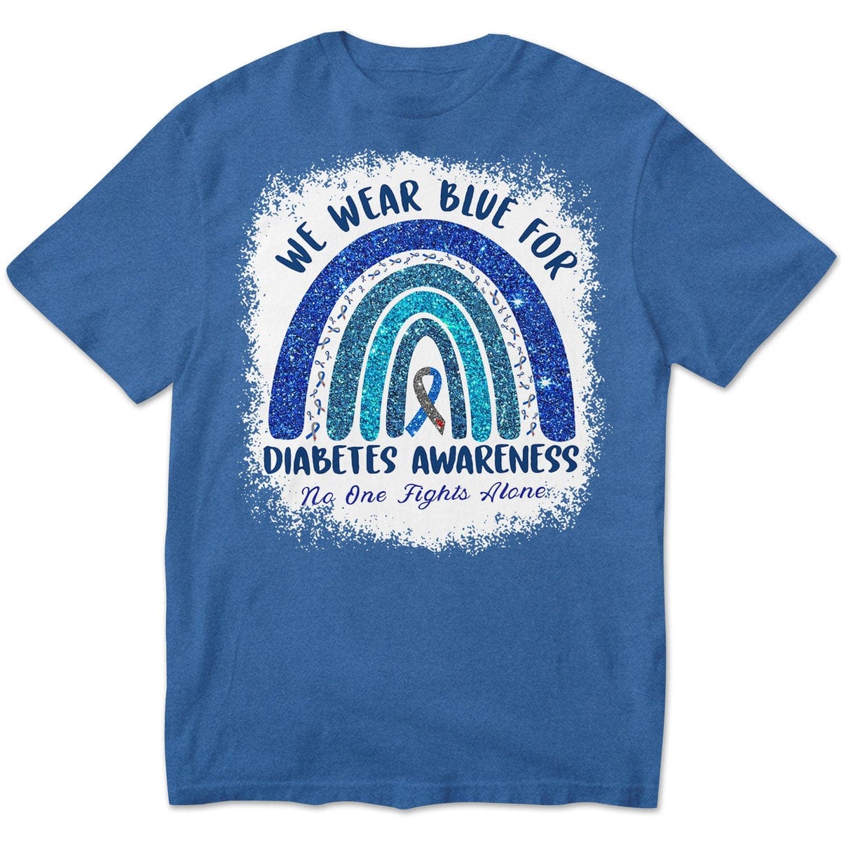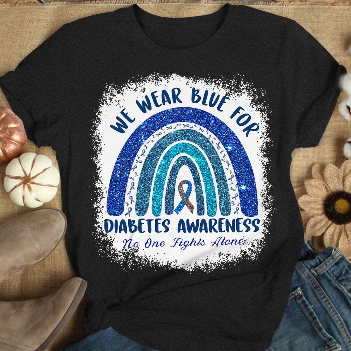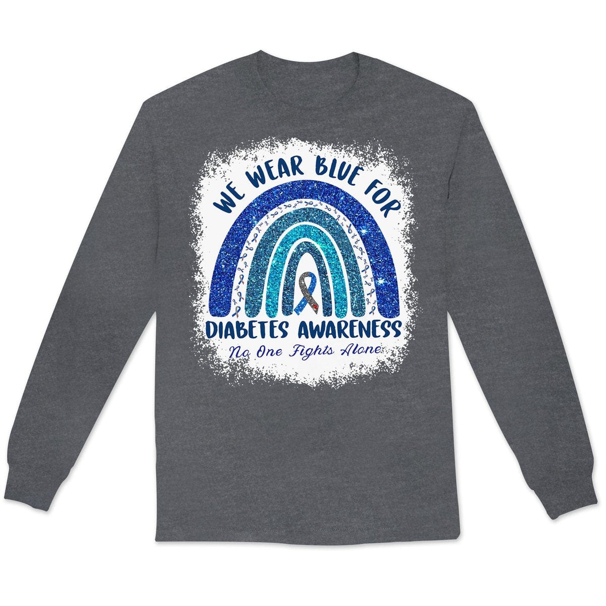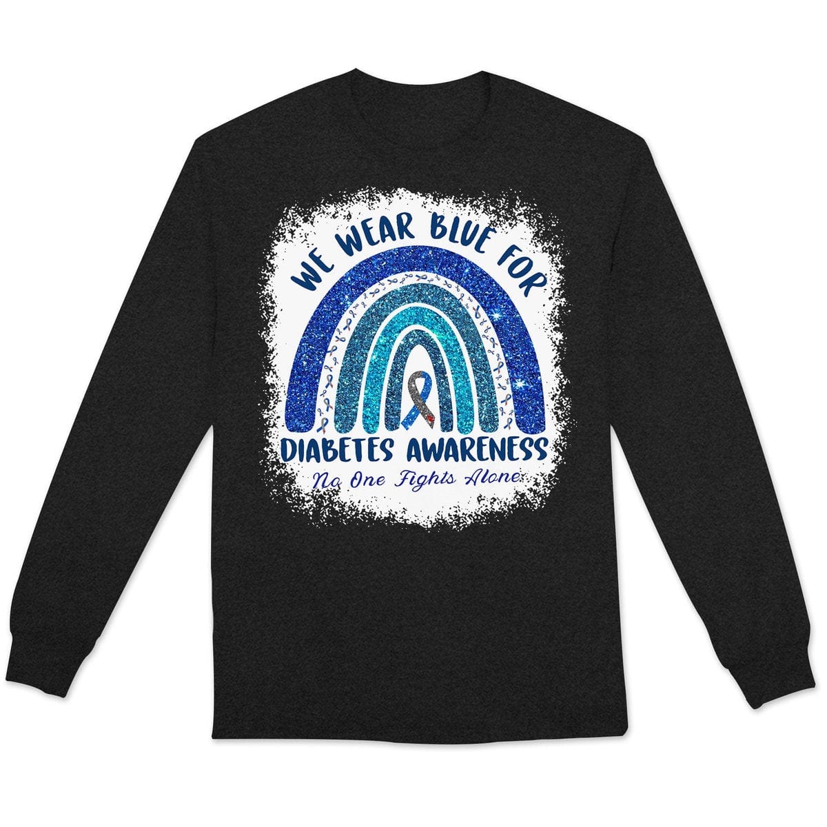 Nadie lucha solo. Usamos azul por la diabetes. Camisetas de manga larga con arcoíris