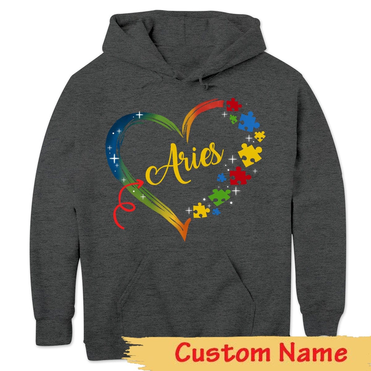 Sudadera con capucha personalizada para concienciar sobre el autismo, pieza de rompecabezas en forma de corazón, camiseta con nombre personalizado