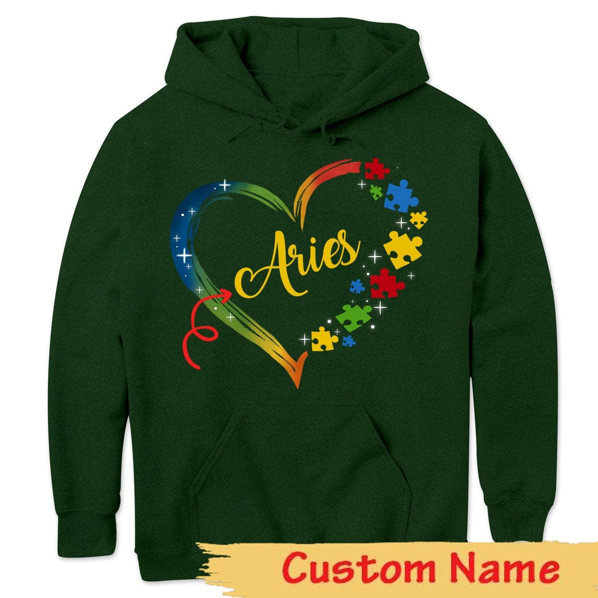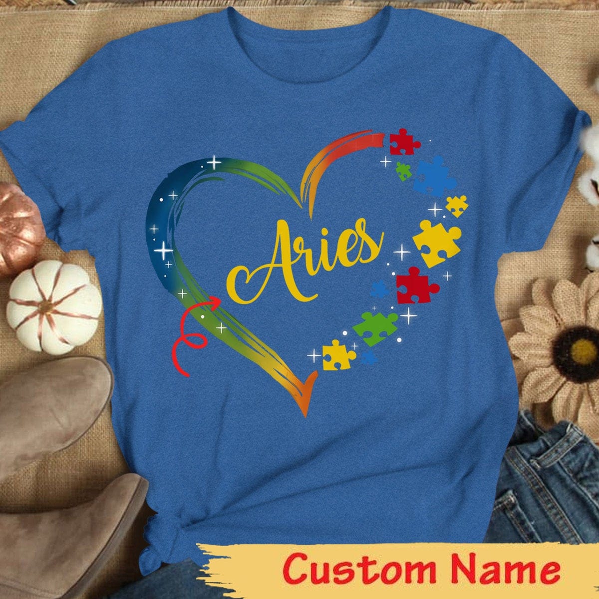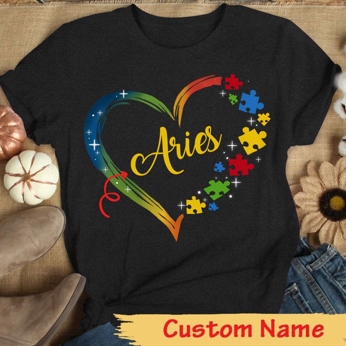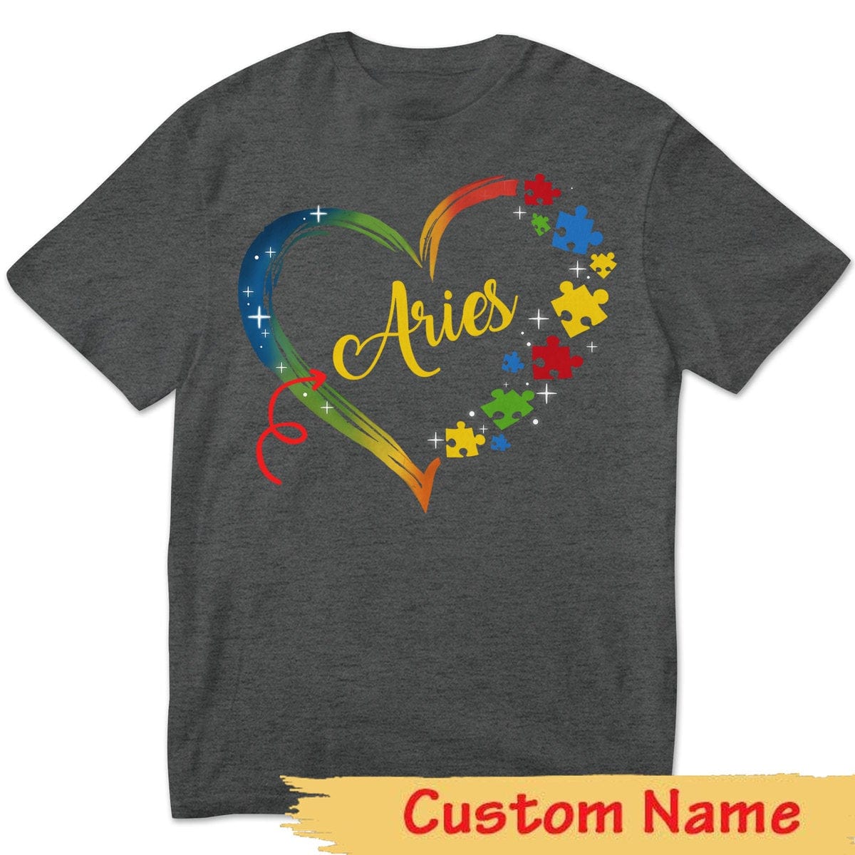 Camiseta personalizada para el autismo, pieza de rompecabezas con forma de corazón, camiseta de concienciación sobre el autismo con nombre personalizado