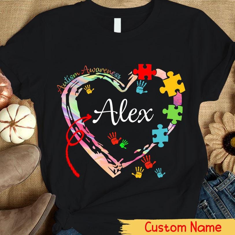 Camisetas personalizadas para autismo para la familia: piezas de rompecabezas, corazones y manos