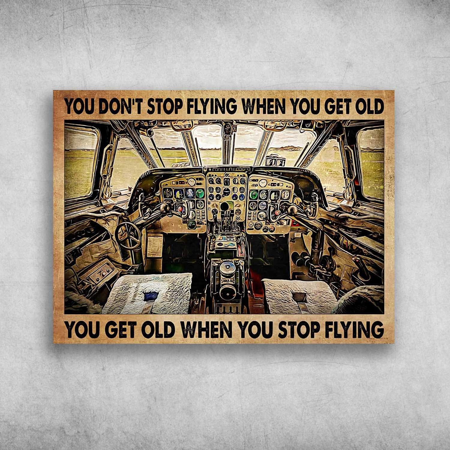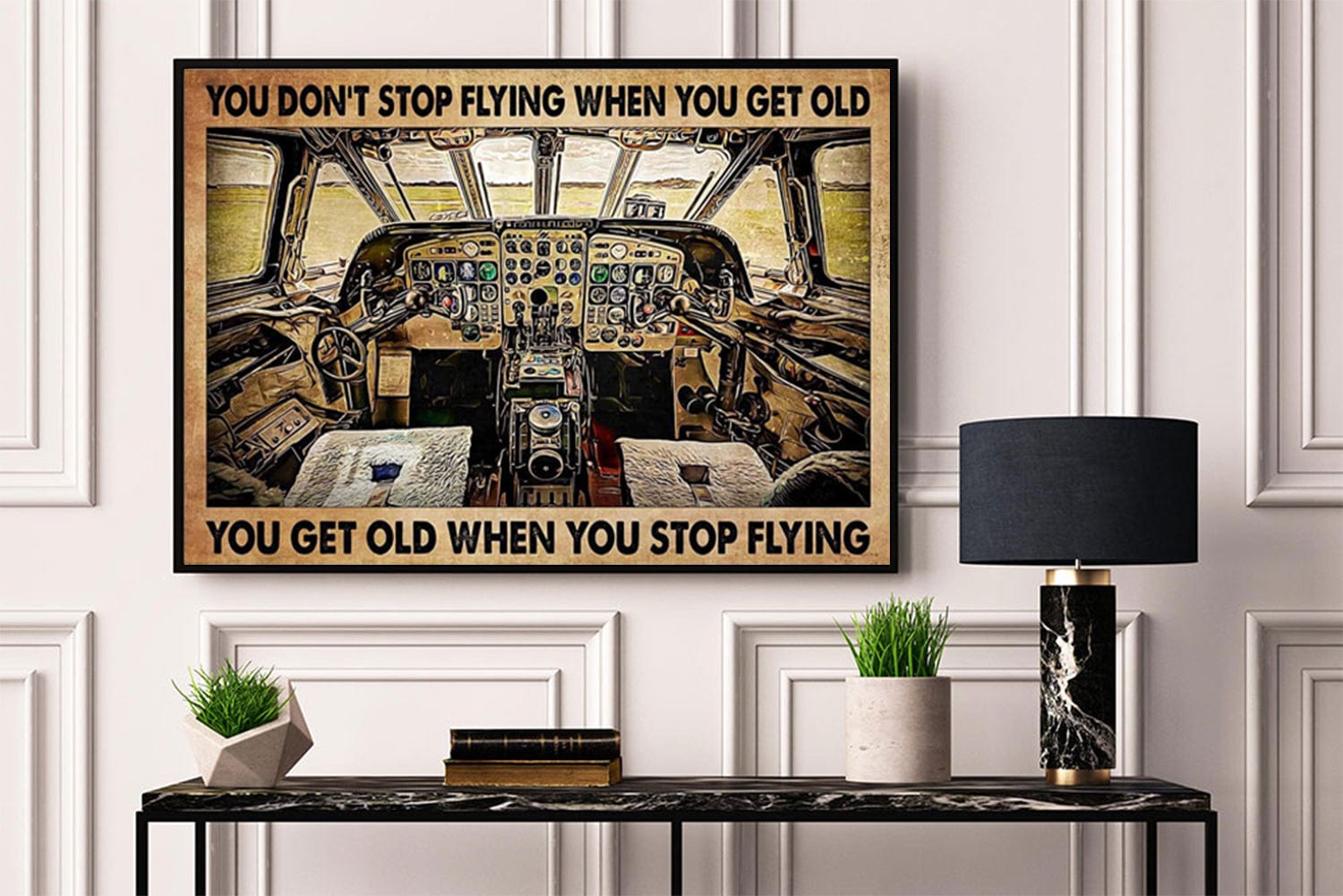 Cabina de avión No dejas de volar cuando envejeces Envejeces cuando dejas de volar Póster de piloto, lienzo