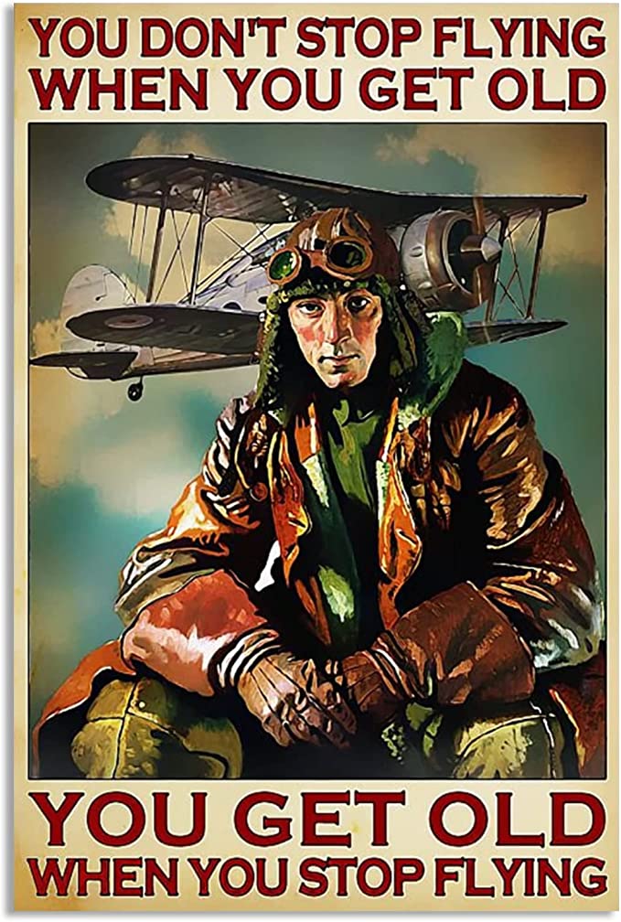 No dejas de volar cuando envejeces Envejeces cuando dejas de volar Póster de piloto vintage, lienzo