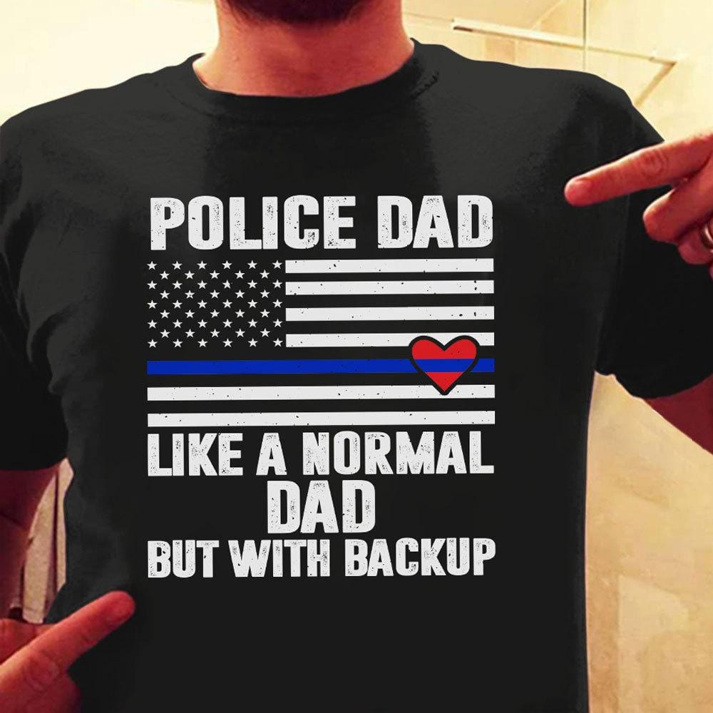 Como un padre normal pero con refuerzos de policía Camiseta de papá, Thin Blue Line Shirts