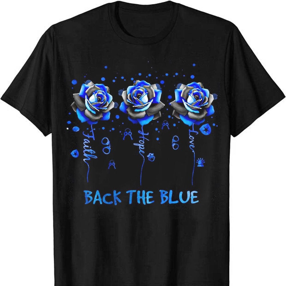 Camiseta de policía, Back The Blue Roses, regalo para mujeres policía