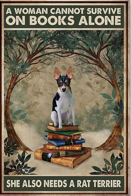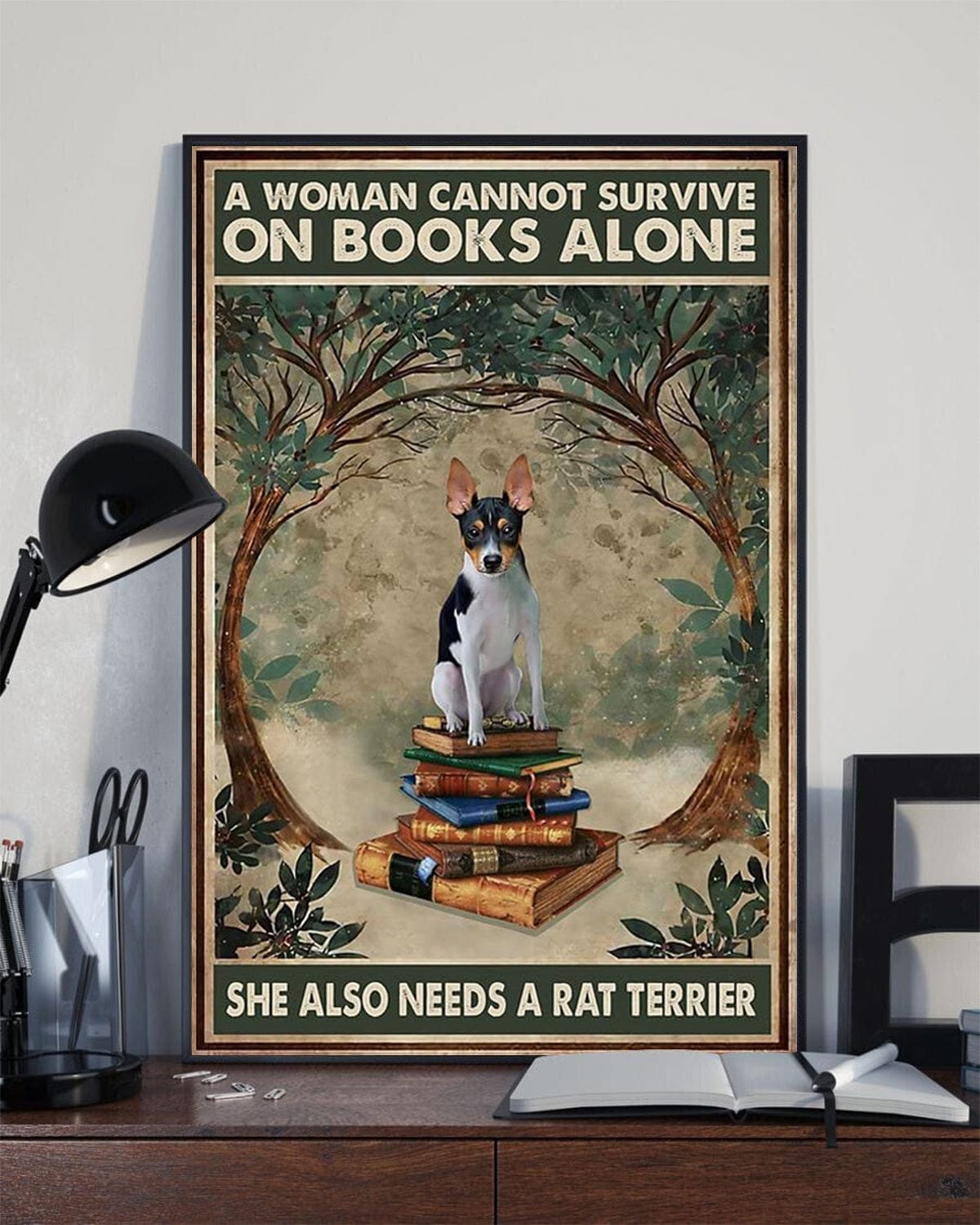 Una mujer no puede sobrevivir solo de libros, también necesita un rat terrier. Póster, lienzo