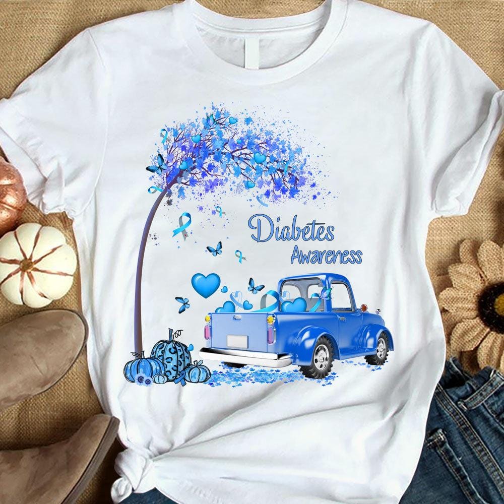 Camiseta divertida de concienciación sobre la diabetes con árbol y coche de cinta