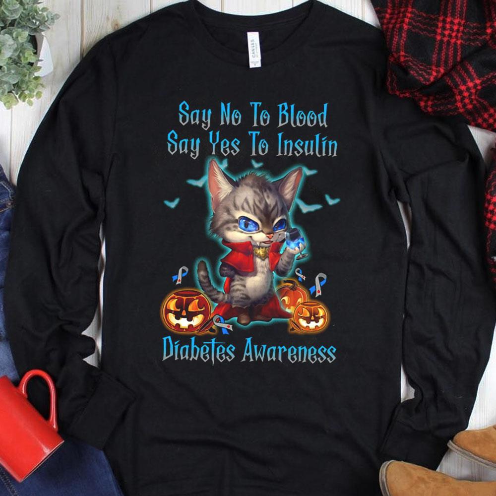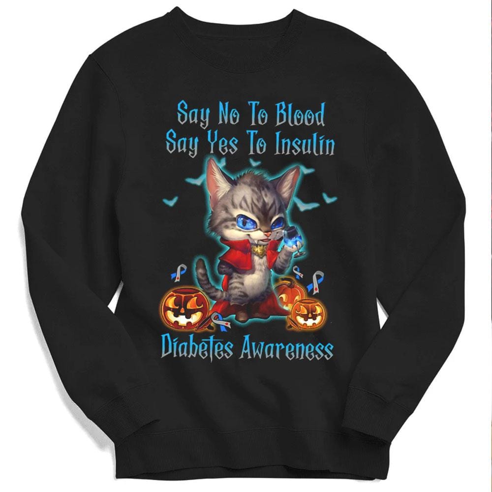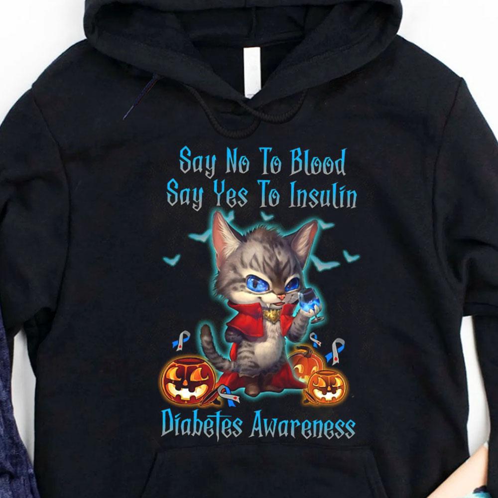 Di no a la sangre, di sí a la insulina, sudadera con capucha y camiseta con diseño de gato y diabetes para Halloween