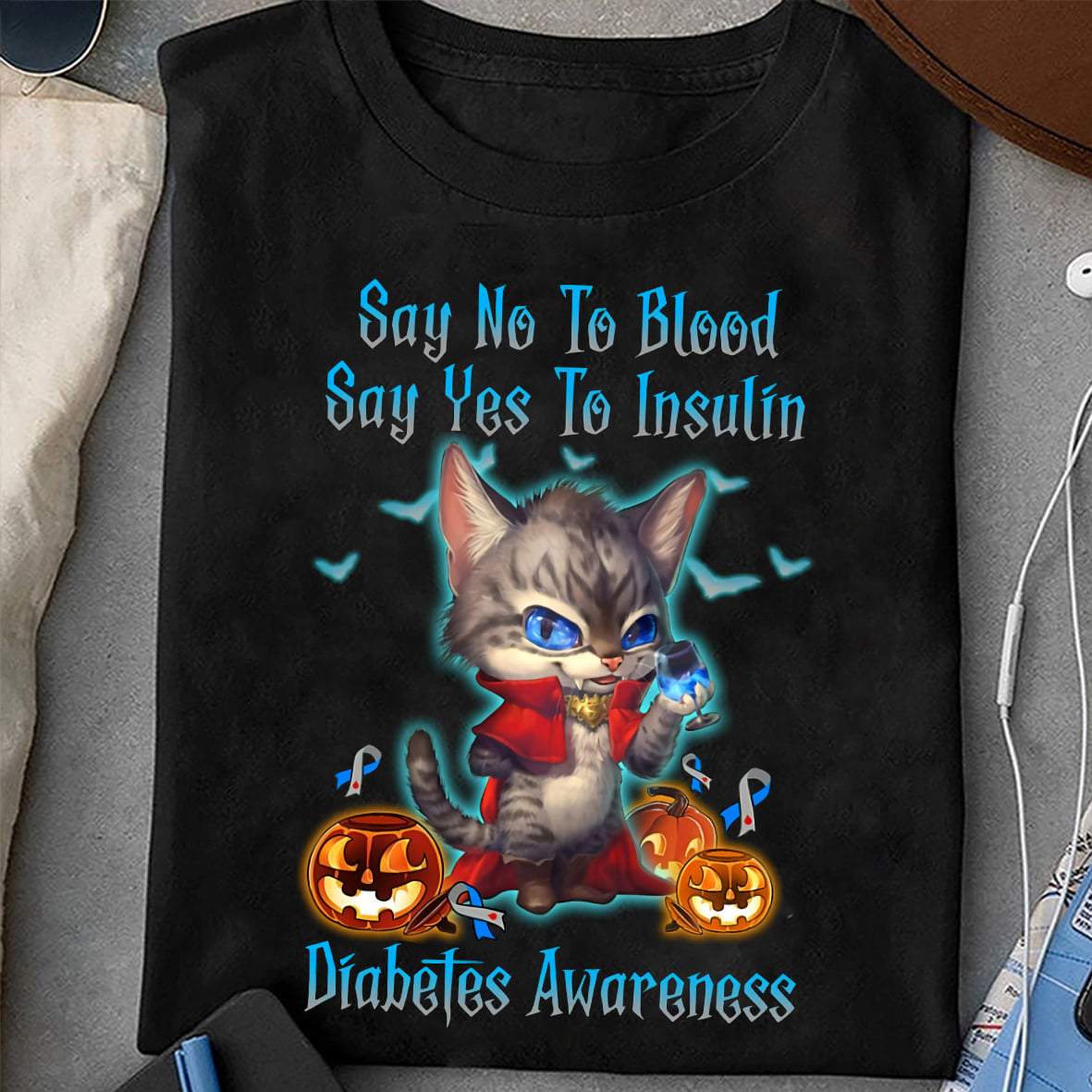 Di no a la sangre, di sí a la insulina, camiseta de Halloween con diseño de gato y diabetes