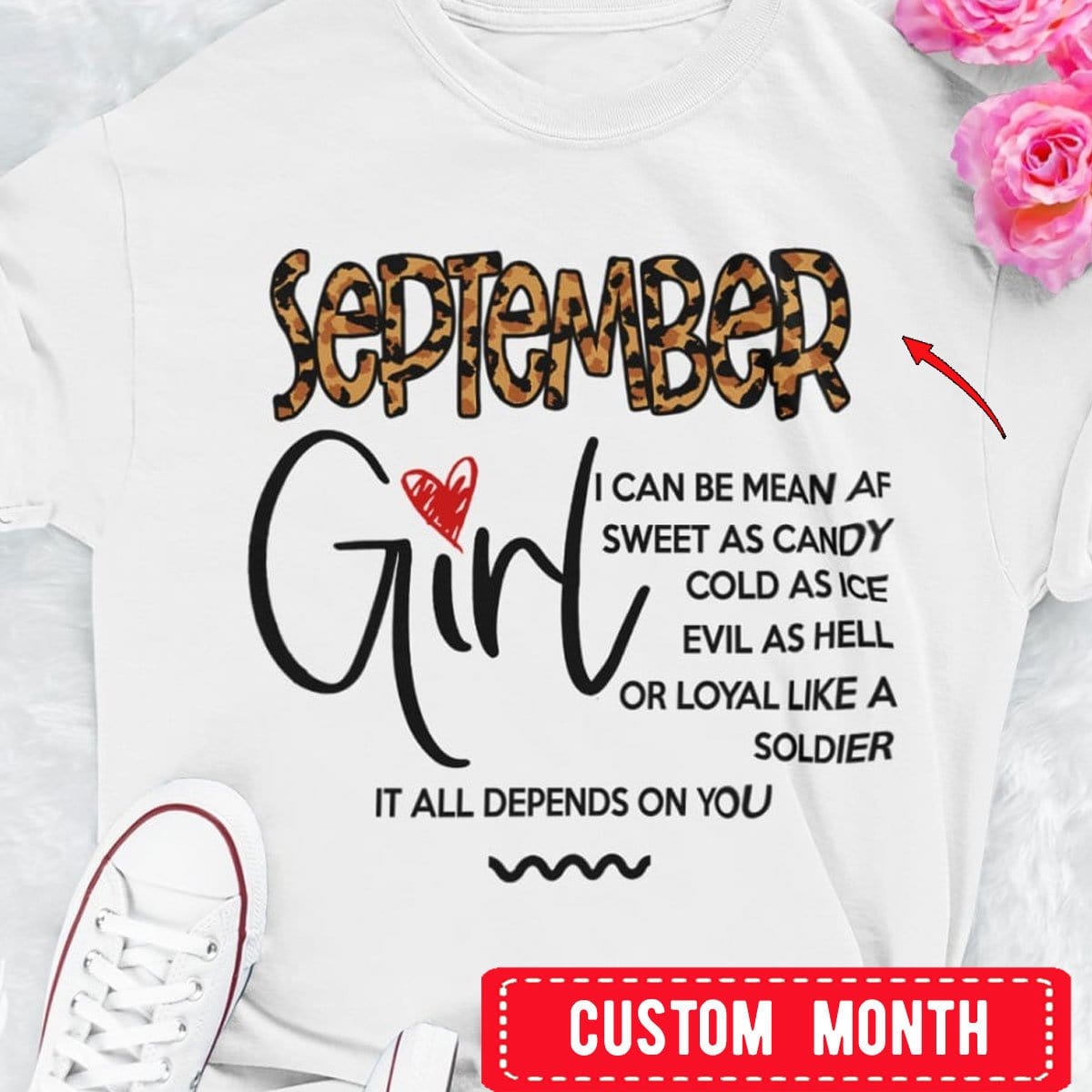 Camisetas de cumpleaños personalizadas con el nombre de la niña Leopard de septiembre
