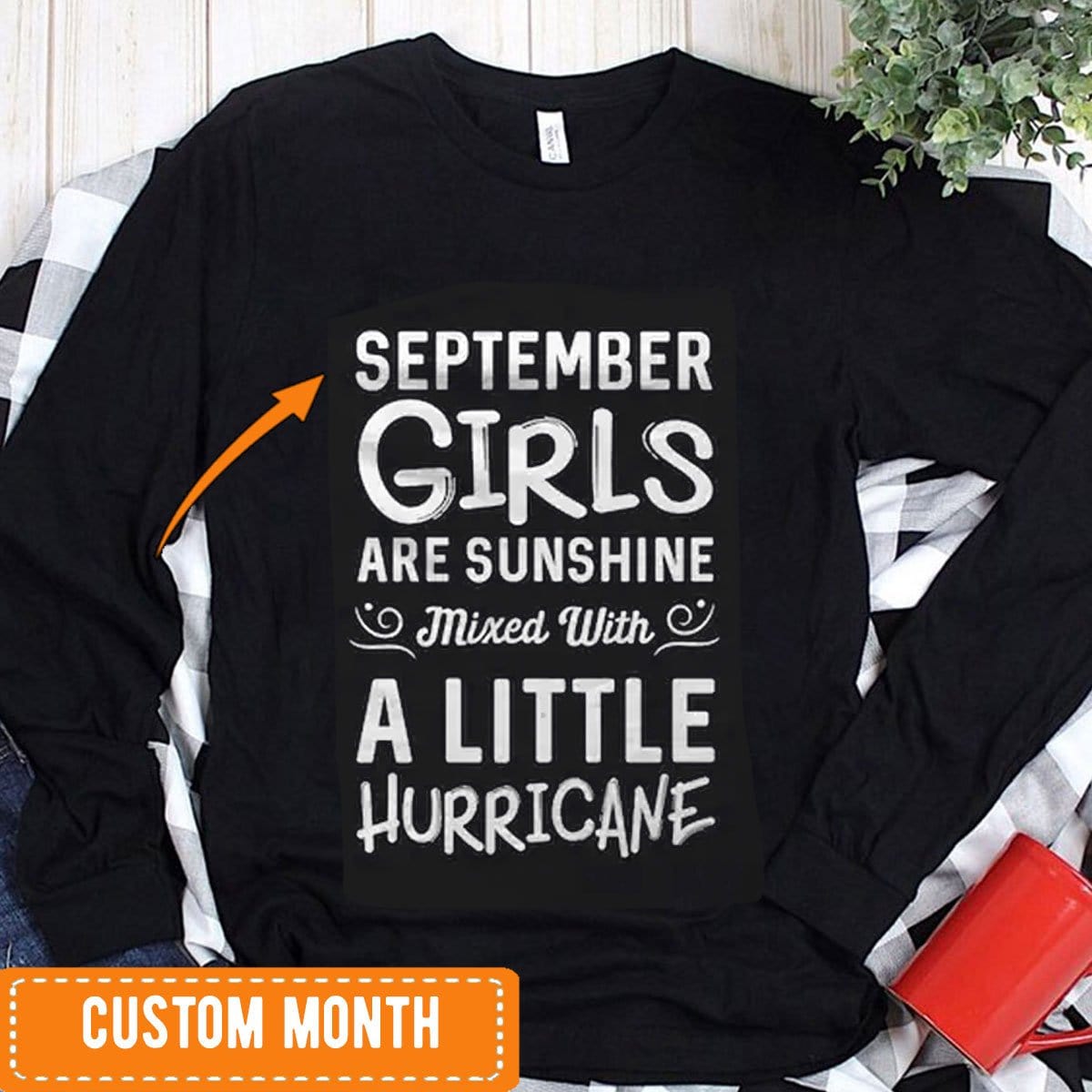 Las chicas de septiembre son un rayo de sol mezclado con un poco de huracán, camisetas de cumpleaños personalizadas