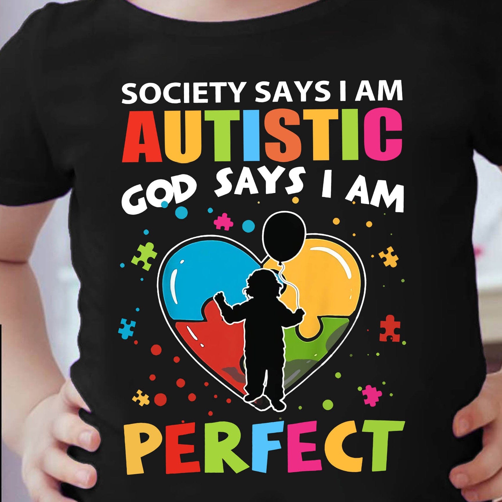 La sociedad dice que soy autista. Dios dice que soy perfecto. Camisetas de autismo