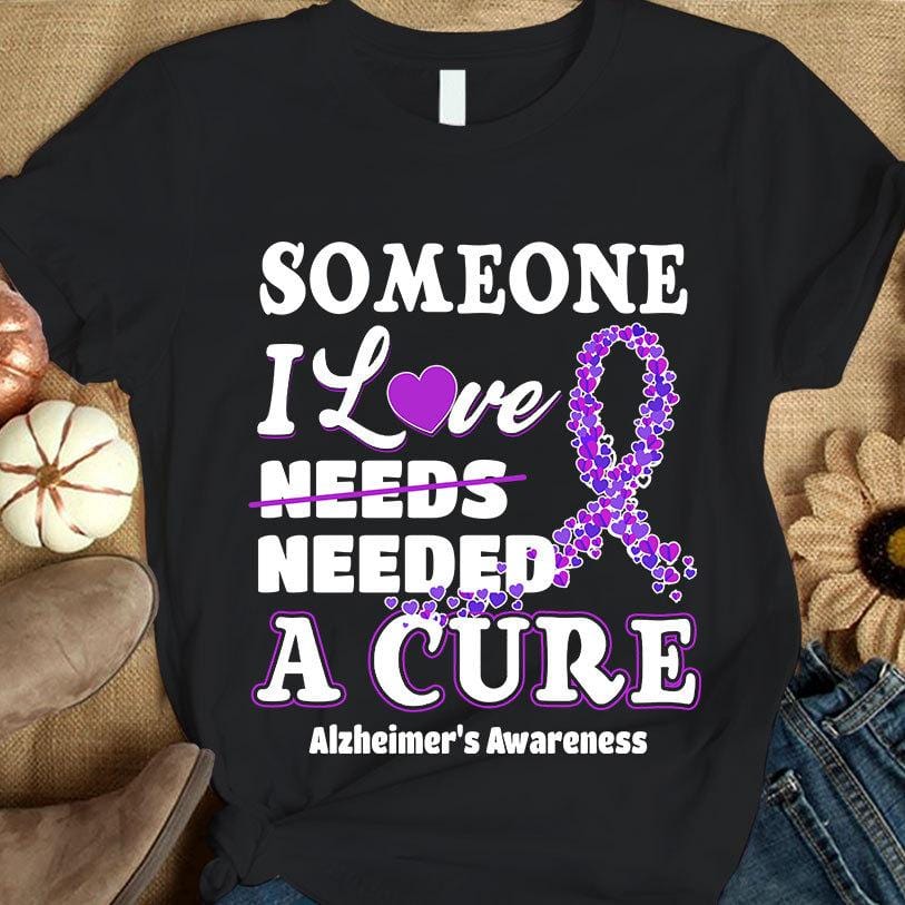 Camisetas de concienciación sobre el Alzheimer Alguien a quien amo necesitaba una cura, cinta