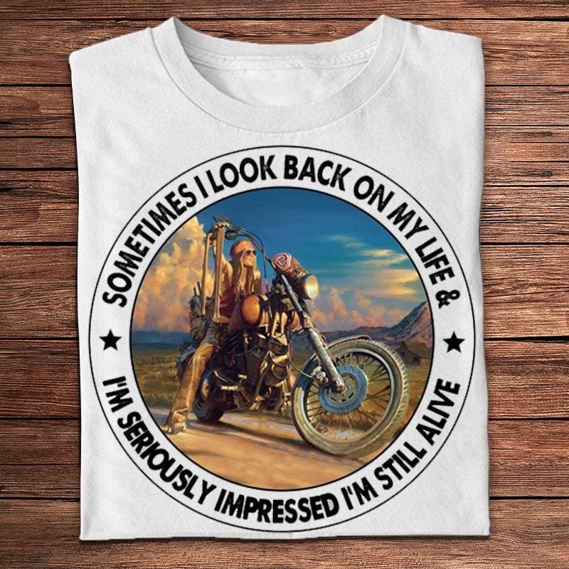 A veces miro hacia atrás en mi vida. En serio, todavía estoy vivo. Camisetas de motociclista