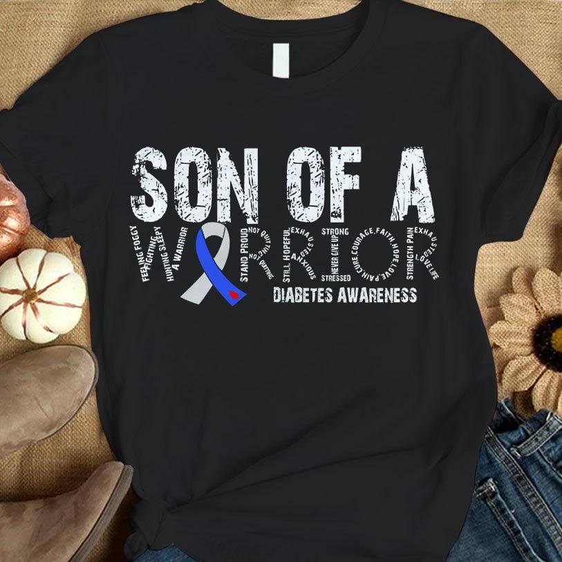 Camiseta con lazo azul y concienciación sobre la diabetes, hijo de un guerrero