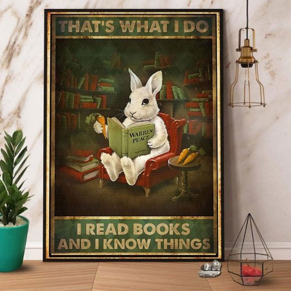 Eso es lo que hago Leo libros Sé cosas Póster de conejito, lienzo