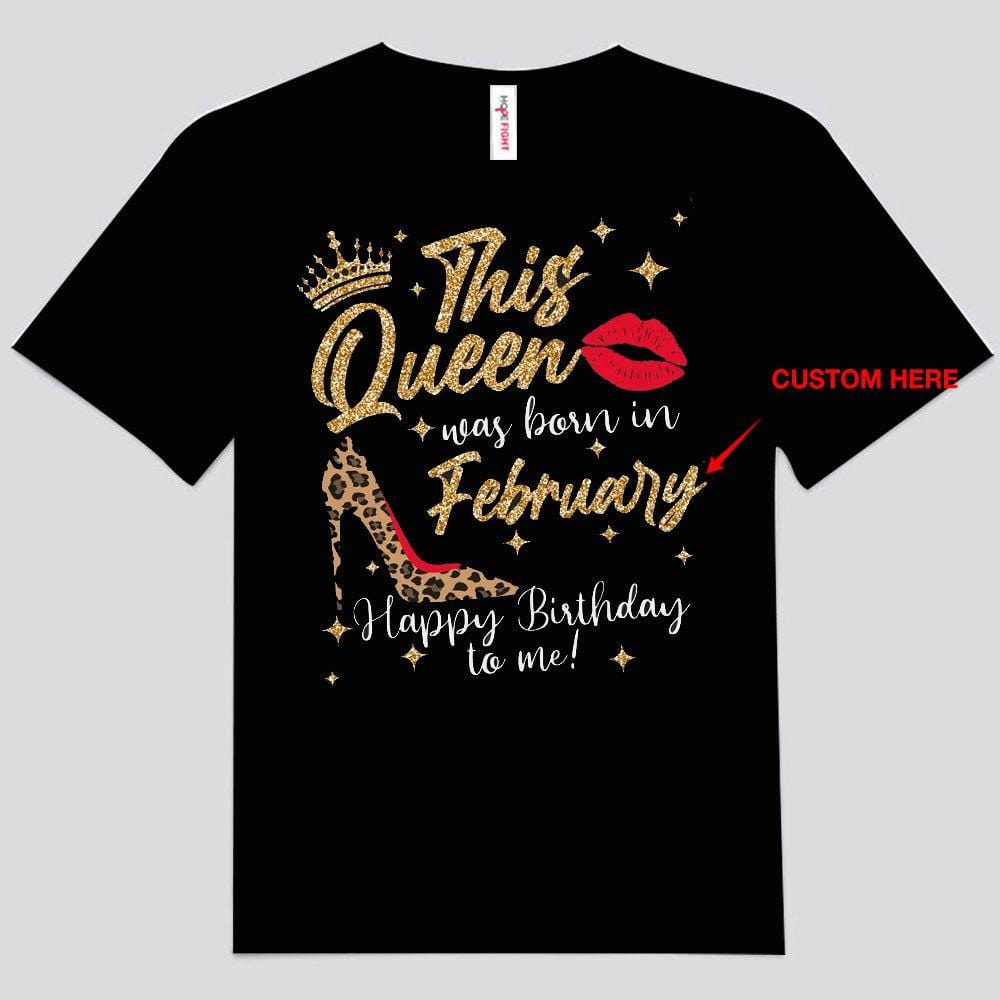 Esta reina nació en febrero Camisetas de cumpleaños personalizadas con tacones altos de leopardo