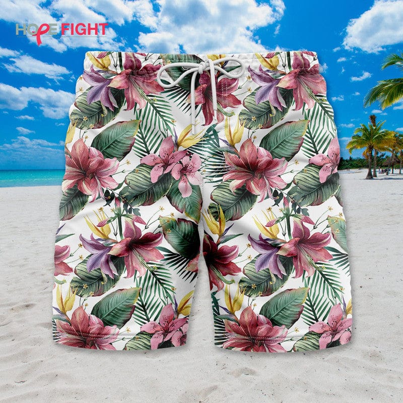 Tropical Floral Swim Trunks, Elegant Summer Beachwear