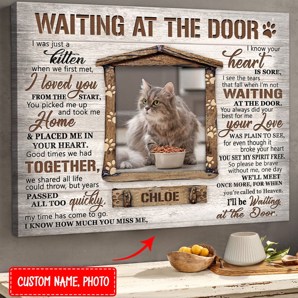Póster conmemorativo personalizado para mascotas "Esperando en la puerta", lienzo
