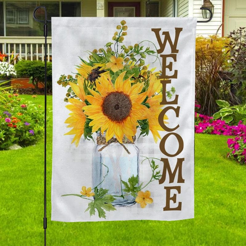 Arte de girasoles para el jardín de bienvenida, casa de girasoles, bandera de jardín