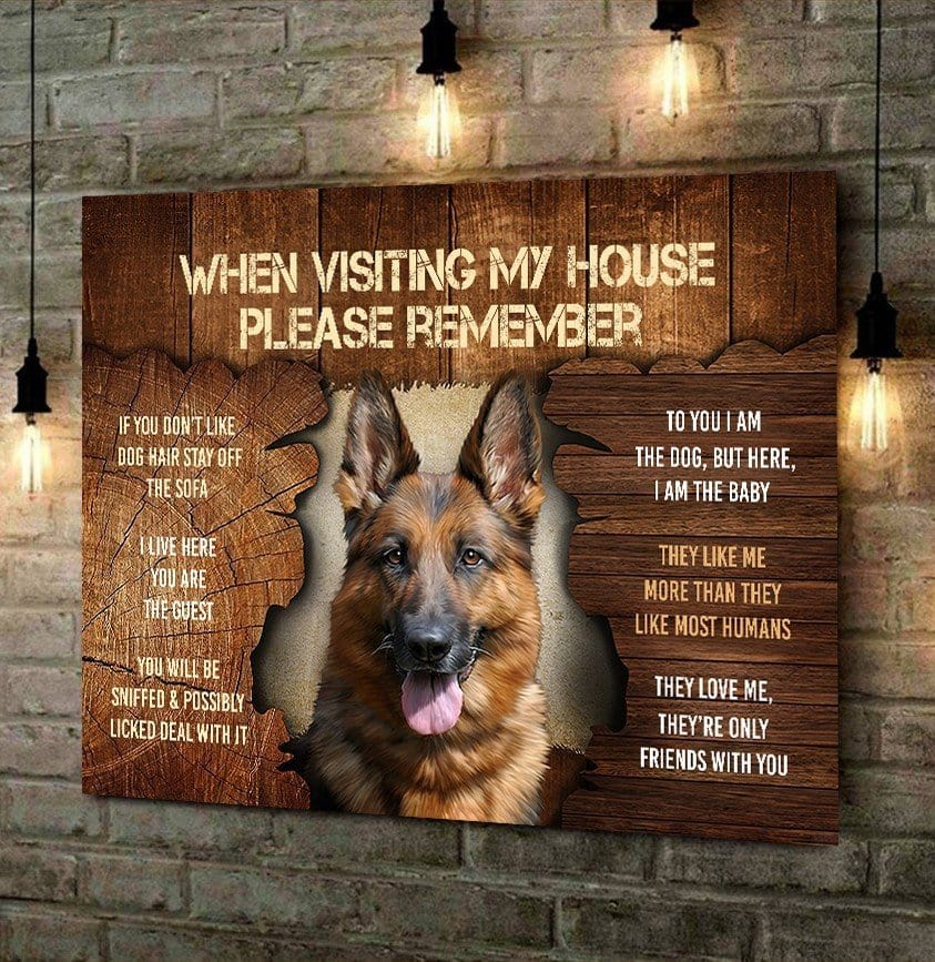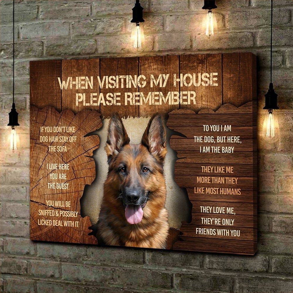 Cuando visites mi casa, recuerda el cartel del pastor alemán, lienzo