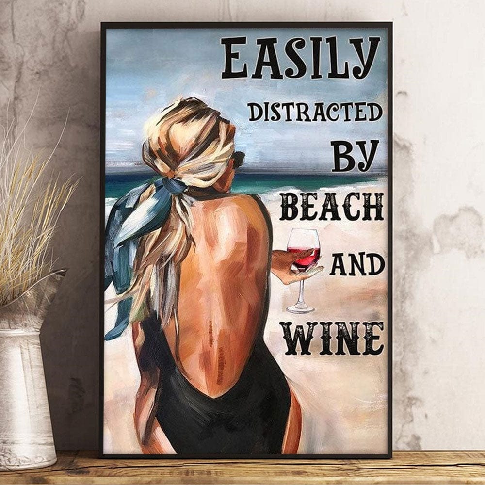 Póster "Fácilmente distraído por la playa y el vino", lienzo