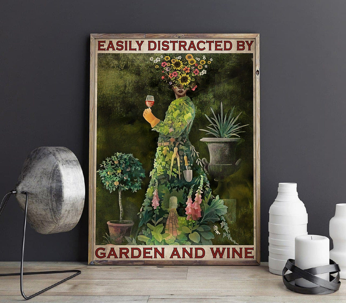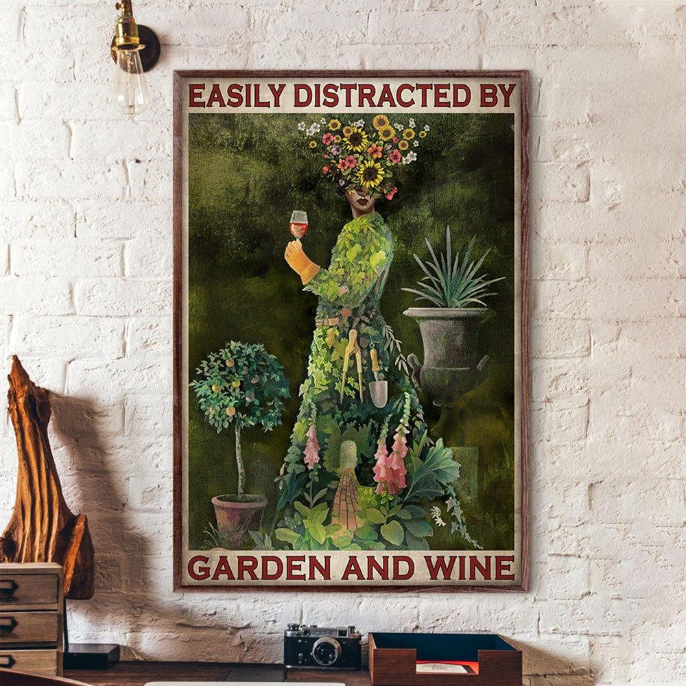 Póster, lienzo, Una mujer que se distrae fácilmente con el jardín y el vino