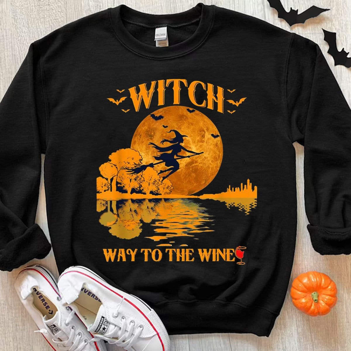Sudadera con capucha y camisetas de Halloween de Witch Way To The Wine