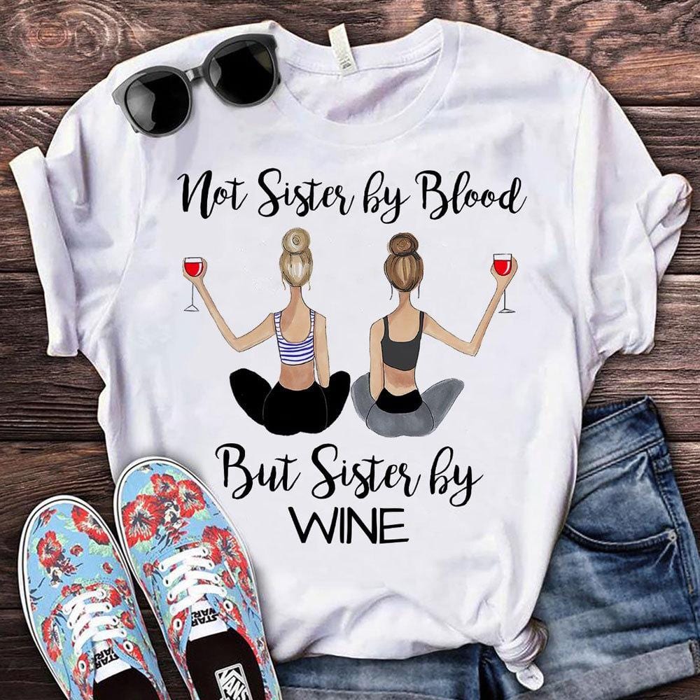 Camisetas de vino para amigas, no hermanas de sangre sino hermanas de vino