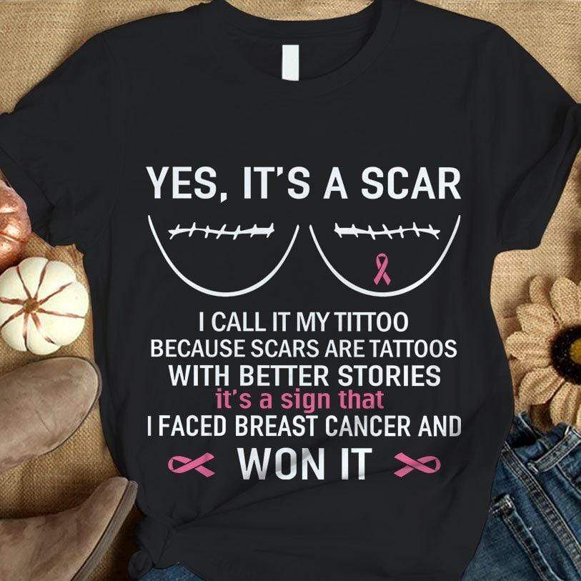 Sí, es una cicatriz. Me enfrenté al cáncer de mama y lo superé. Camiseta de concientización sobre el cáncer de mama.