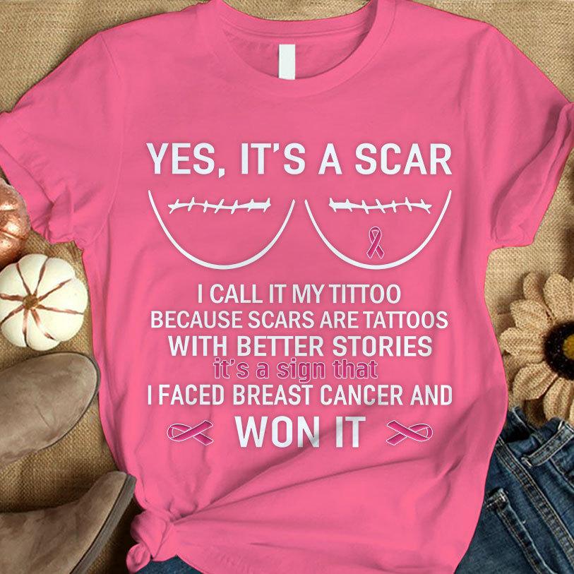 Sí, es una cicatriz. Me enfrenté al cáncer de mama y lo superé. Camiseta con lazo rosa para concientizar a las sobrevivientes del cáncer de mama