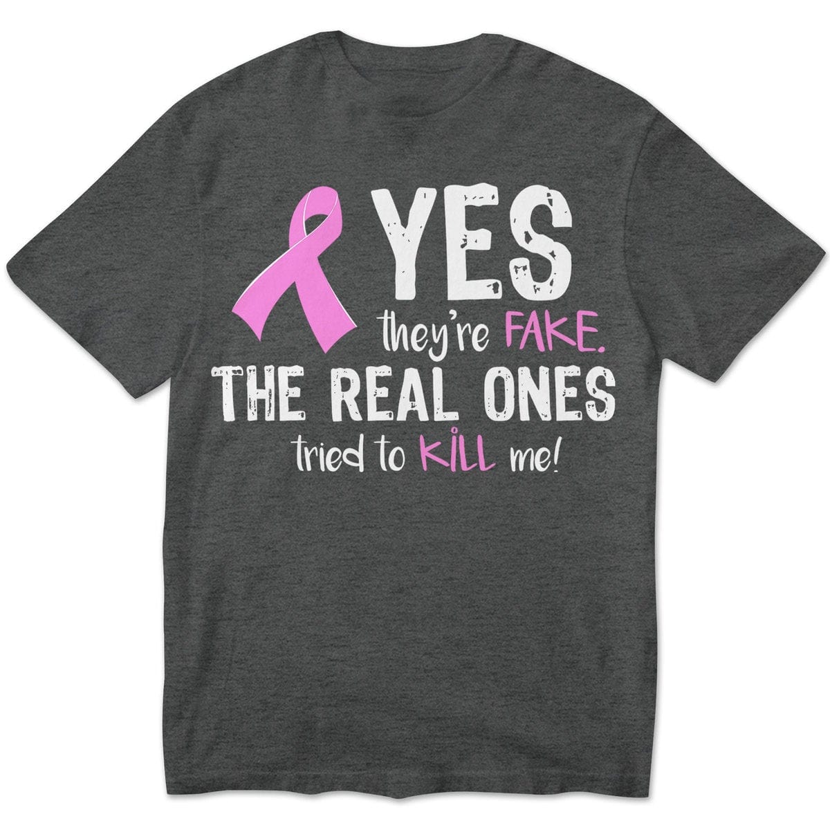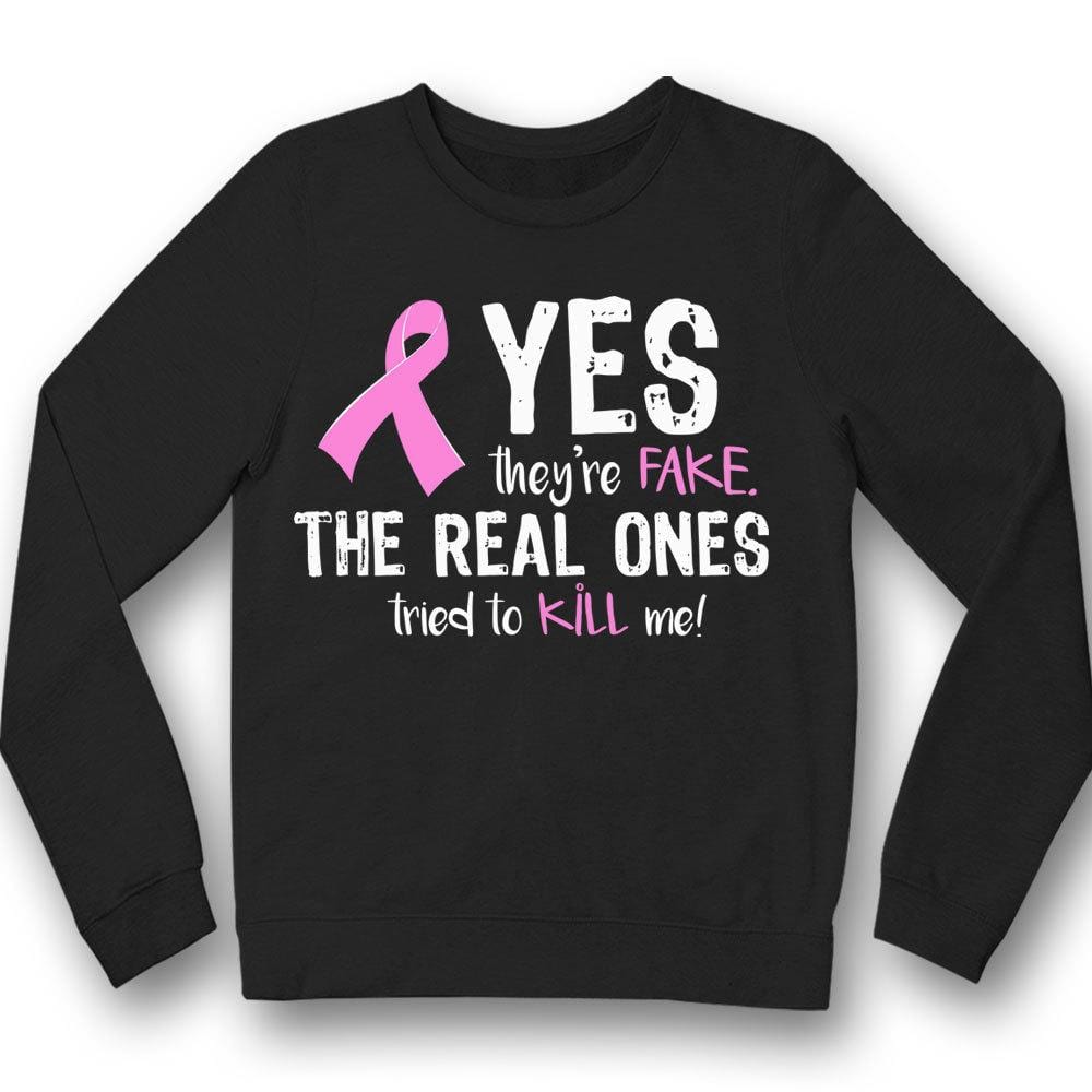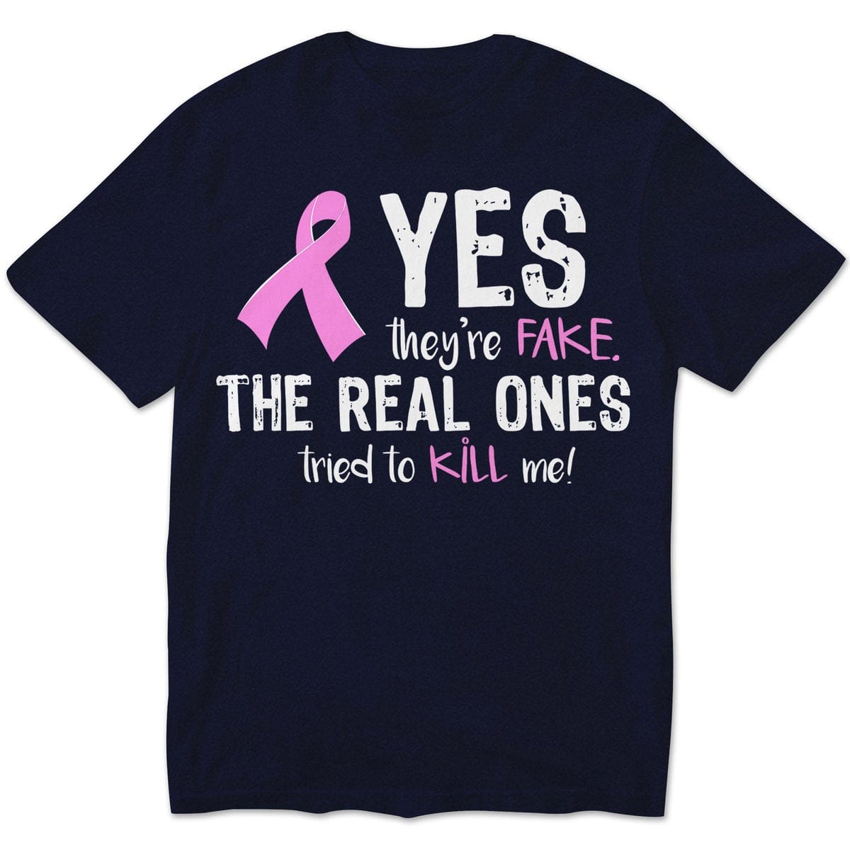 Sí, son falsos. Los verdaderos intentaron matarme. Sudadera con capucha y camiseta de cáncer de mama.