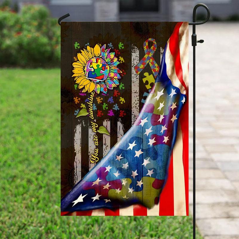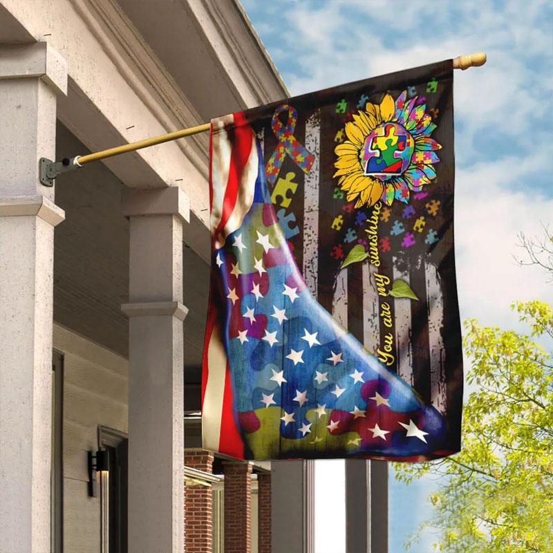 Eres mi sol, cinta con forma de pieza de rompecabezas y girasol, bandera estadounidense de concienciación sobre el autismo, bandera para casa y jardín