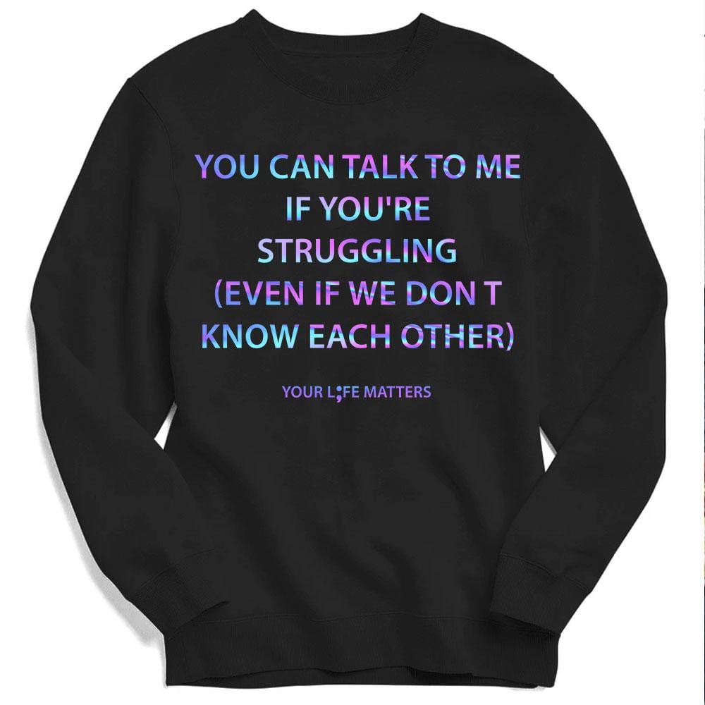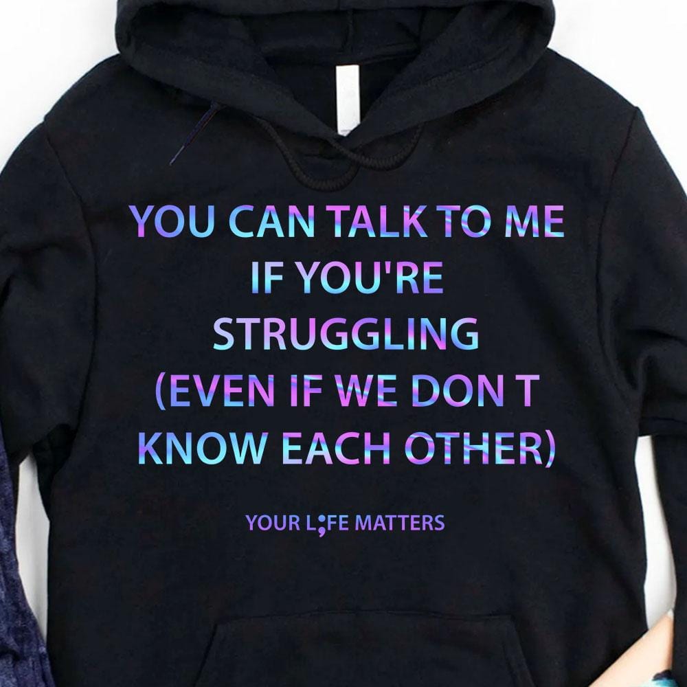 Puedes hablar conmigo si estás luchando, tu vida importa Sudadera con capucha y camisetas de concienciación sobre el suicidio