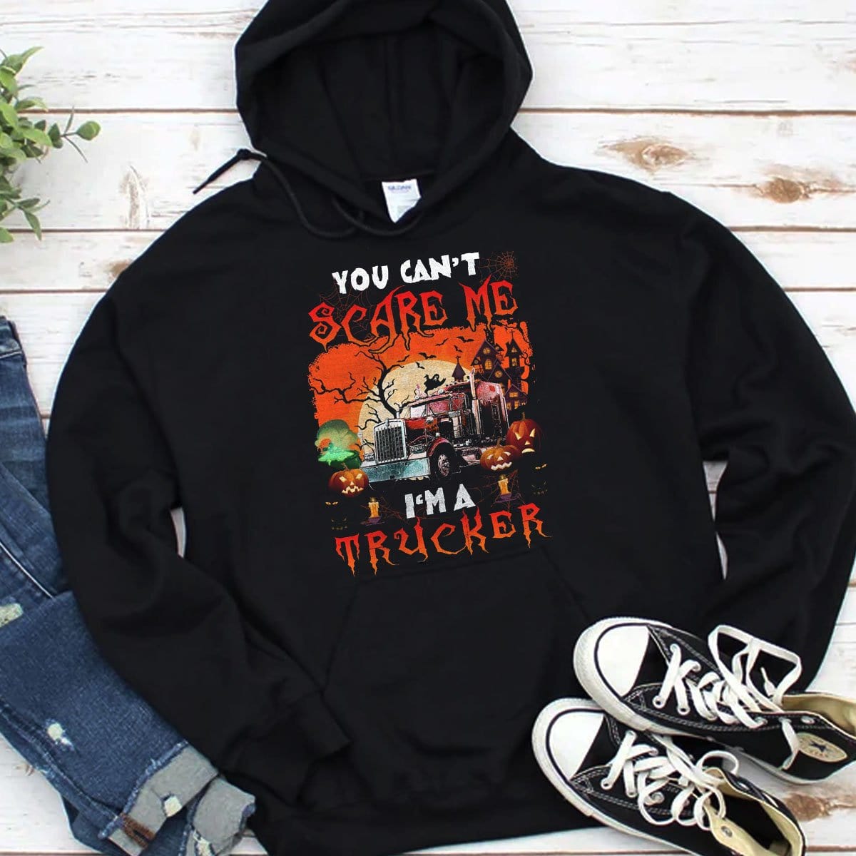 Sudadera con capucha y camisetas de Halloween "No puedes asustarme, soy camionero"