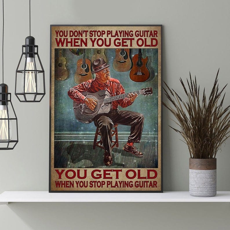 No dejas de tocar la guitarra cuando envejeces Envejeces cuando dejas de tocar la guitarra Póster, Lienzo