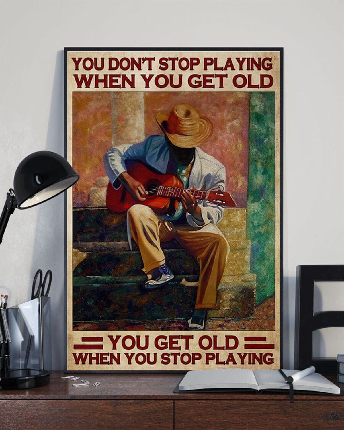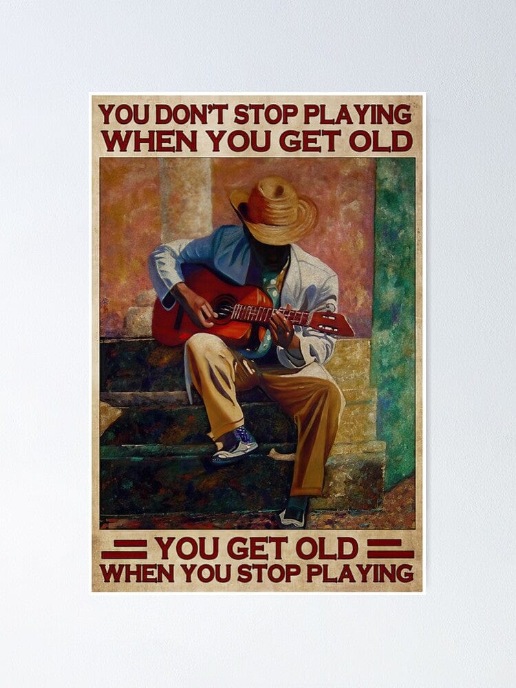No dejas de tocar cuando te haces viejo Te haces viejo cuando dejas de tocar la guitarra Póster, Lienzo