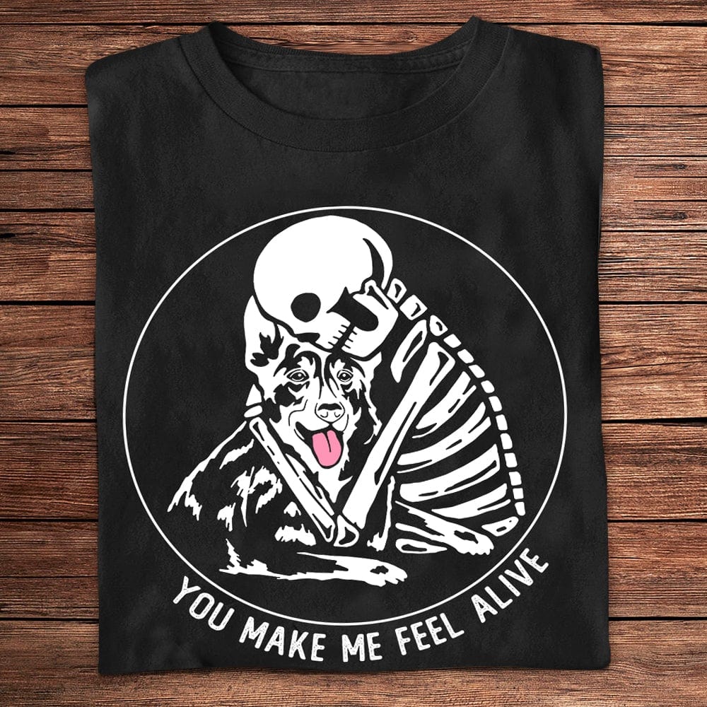 Camisetas de pastor alemán esqueleto "Me haces sentir vivo"