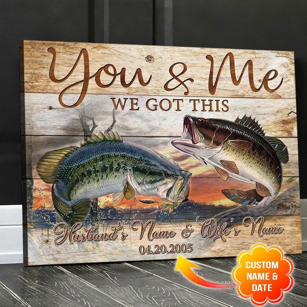 Póster de pesca personalizado en lienzo, impresión artística de pared con nombre y fecha personalizados, You & Me We Got This