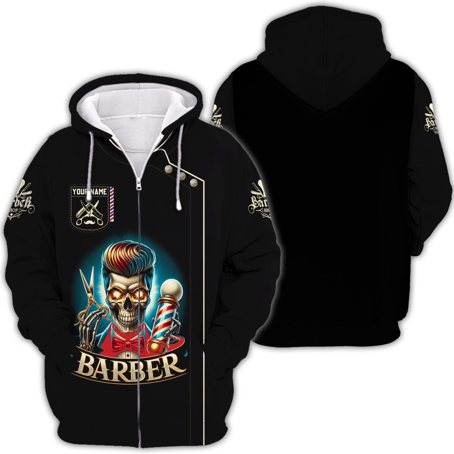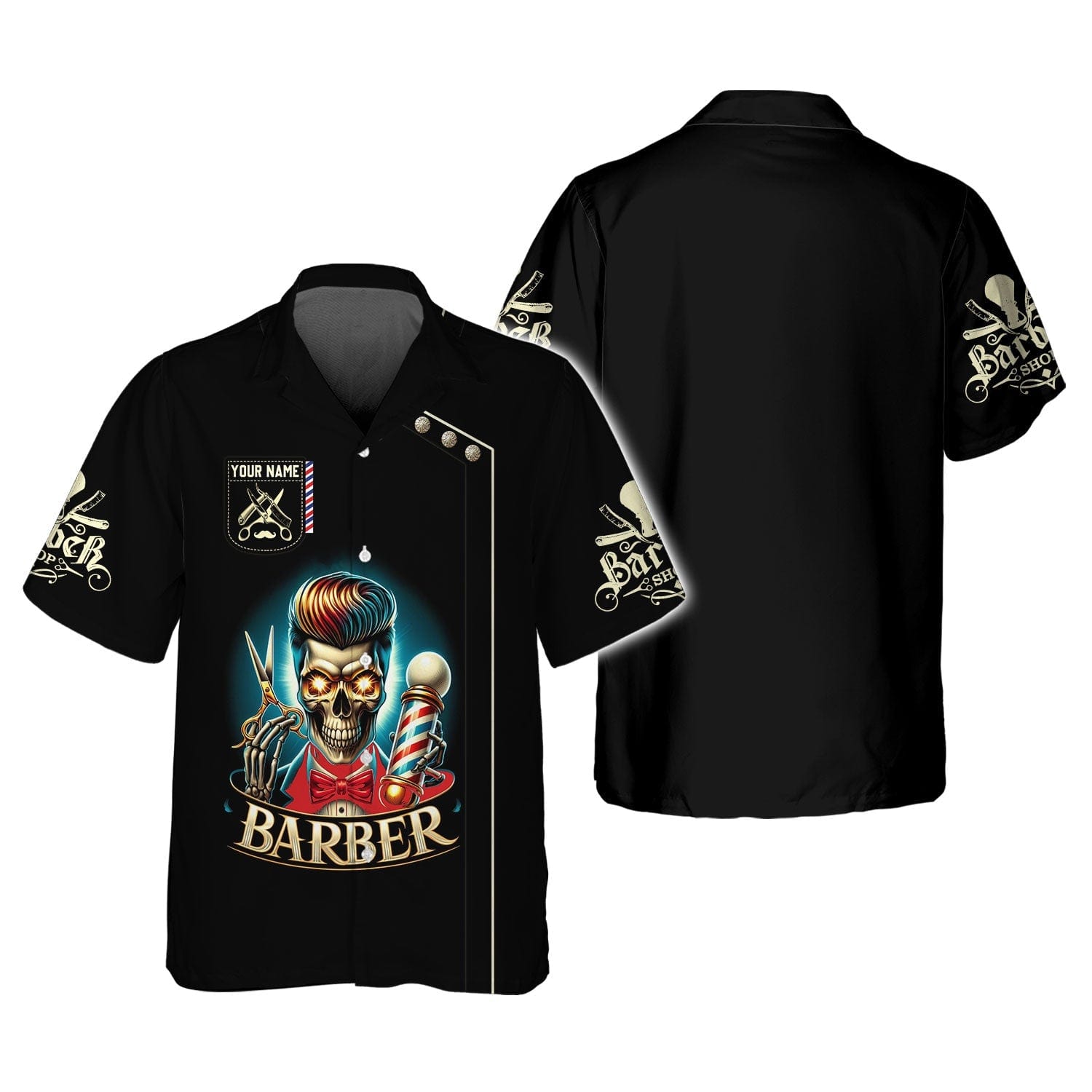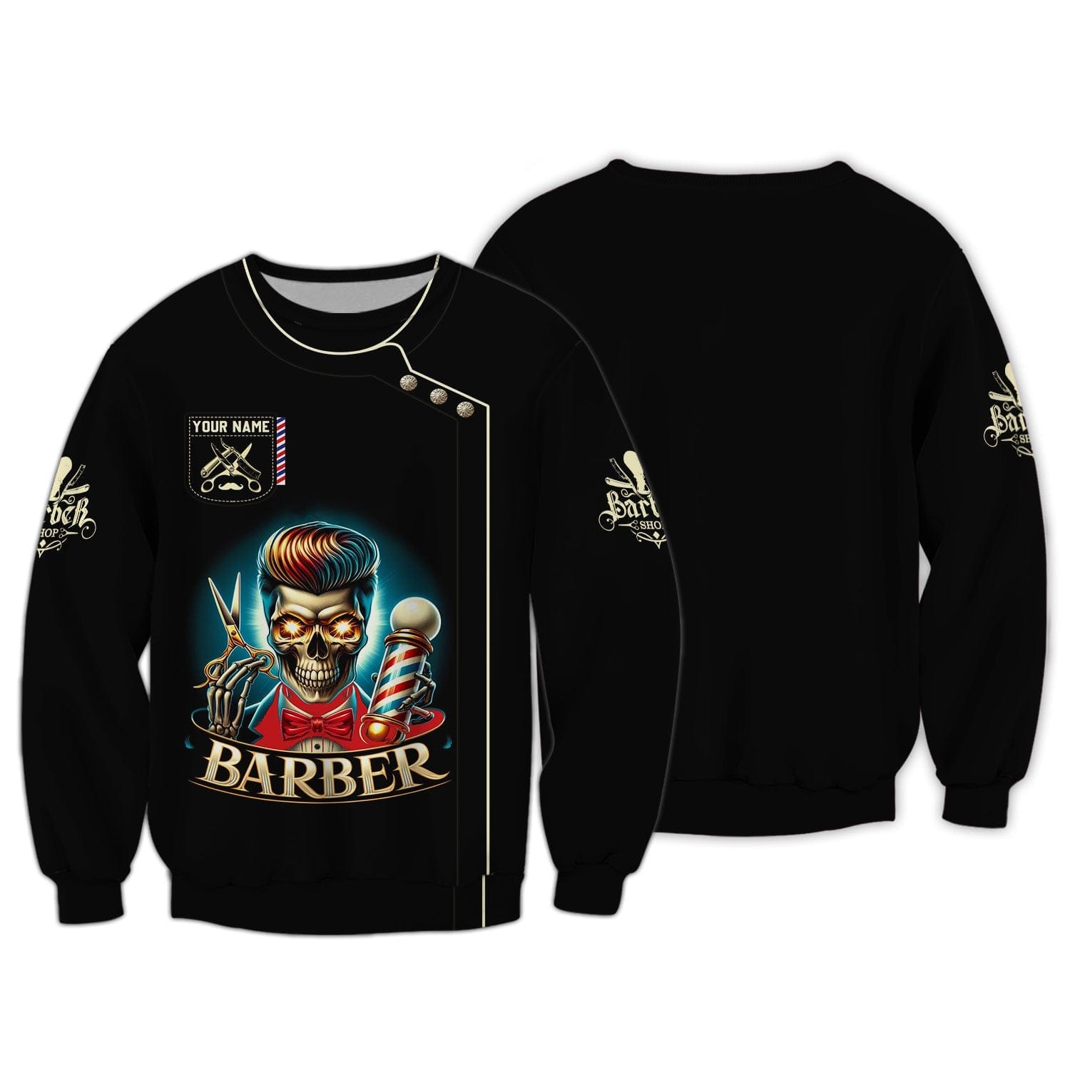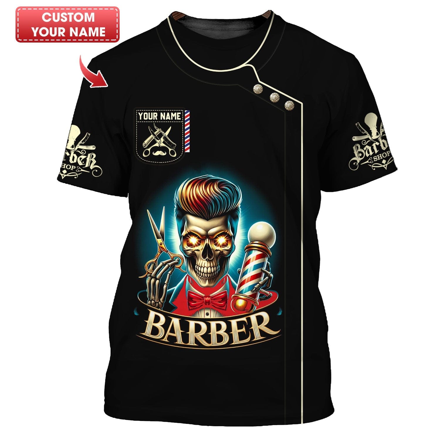 3D Full Print Skull Barber Shirt Personalized Name Gift For Barber Lovers, All Over Printed