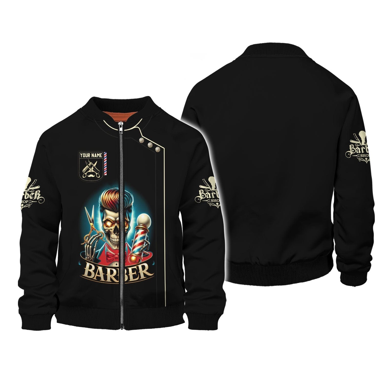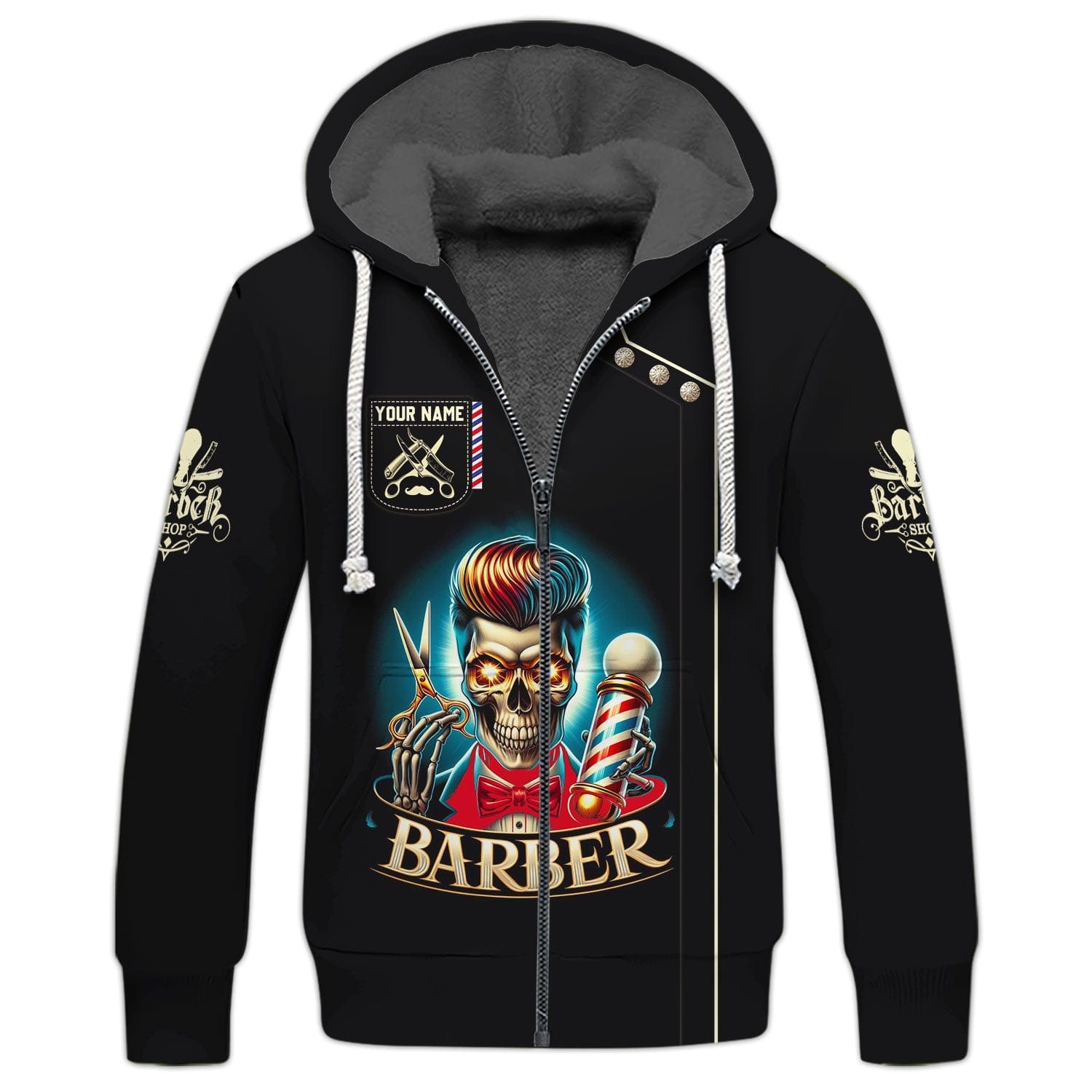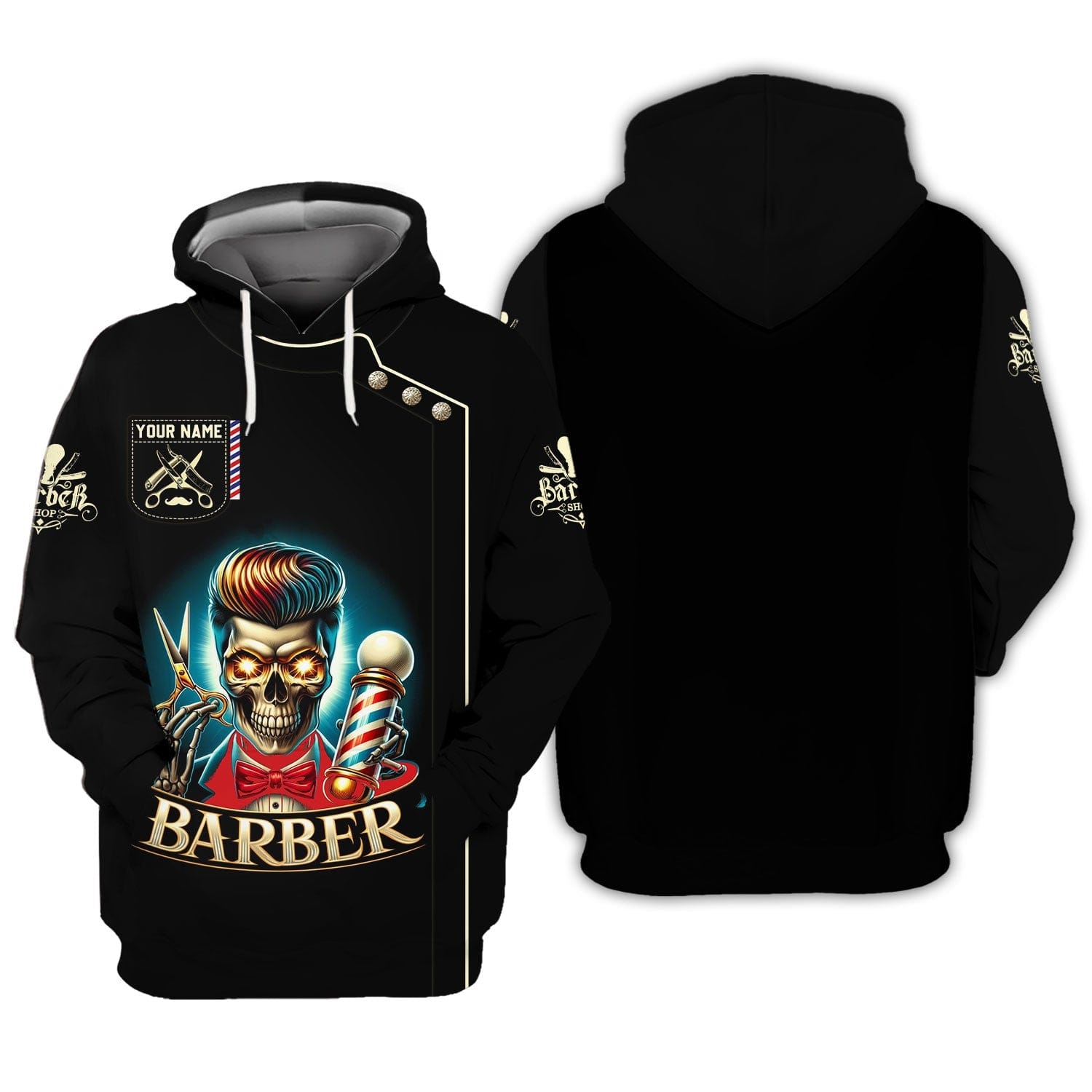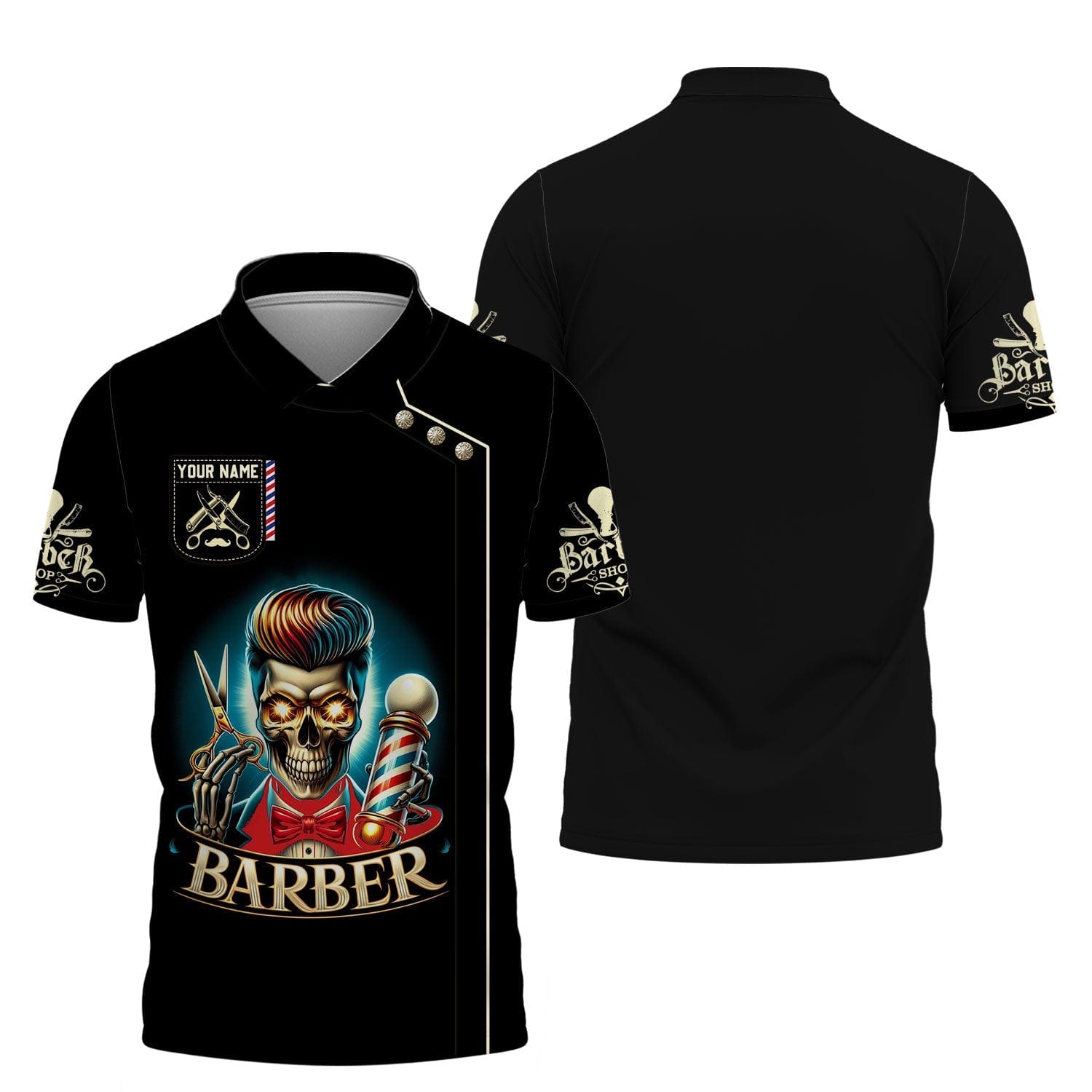 3D Full Print Skull Barber Shirt Personalized Name Gift For Barber Lovers, All Over Printed