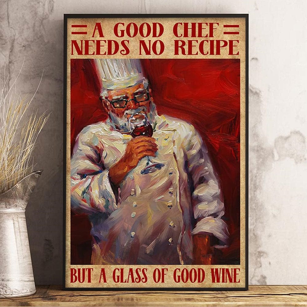 A Good Chef Needs No Recipe But A Glass Of Good Wine Poster, Canvas