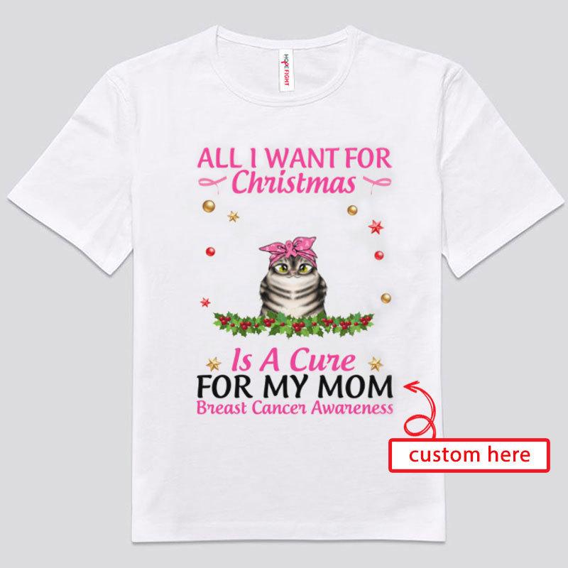 All I Want For Christmas Is Cure For My Mom Personalized Breast Cancer Shirts