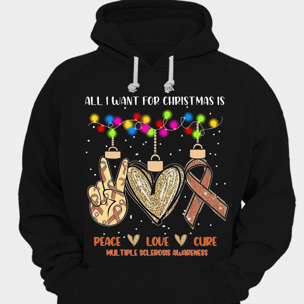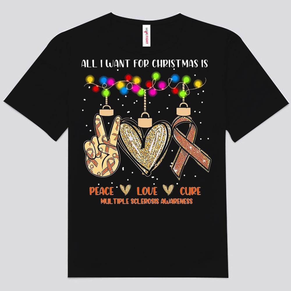 All I Want For Christmas Is Peace Love Cure Multiple Sclerosis Shirts