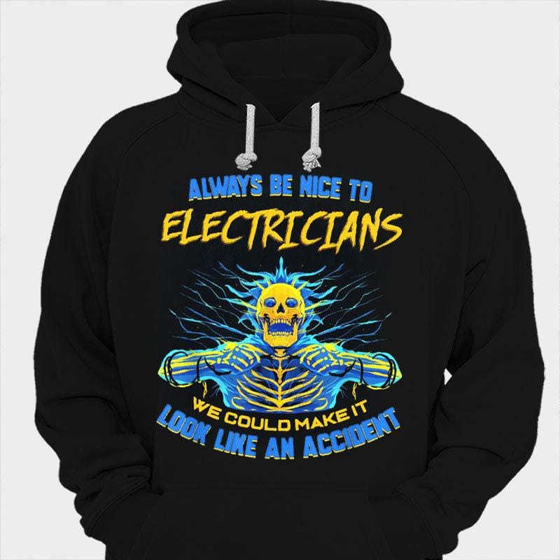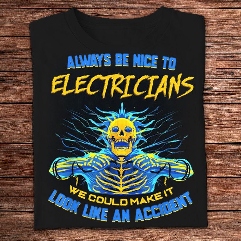 Always Be Nice To Electricians Funny Skeleton Shirts