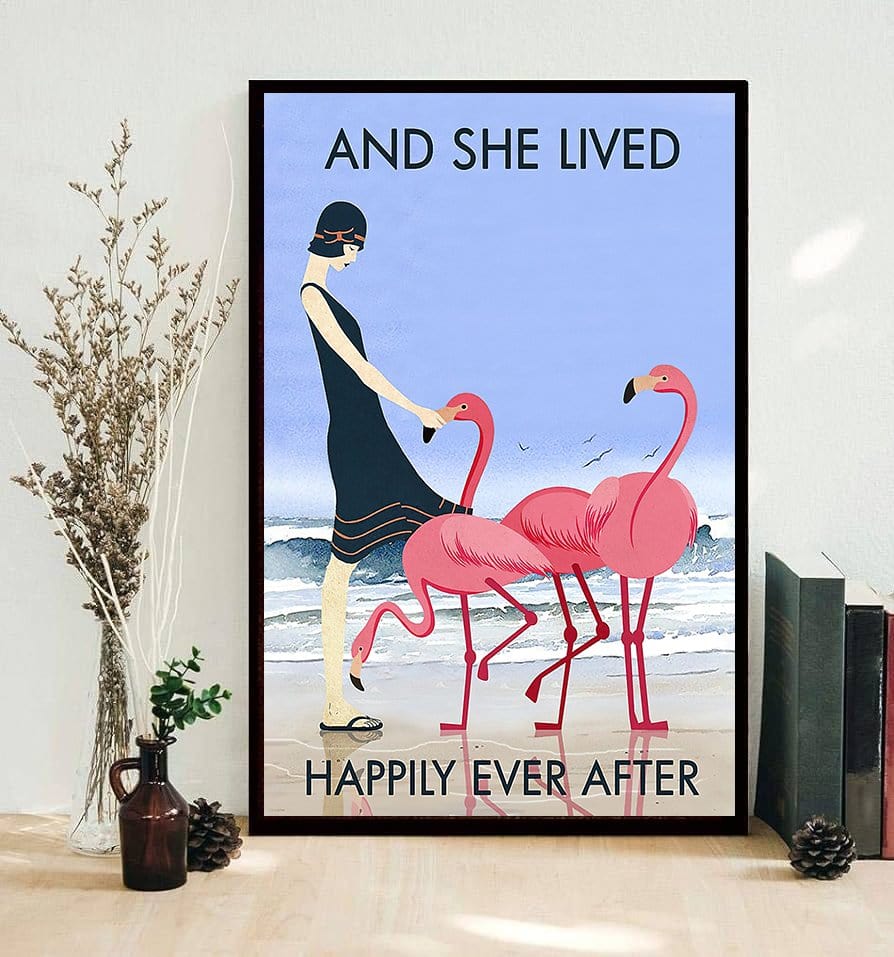 And She Lived Happily Ever After Flamingo Poster, Canvas